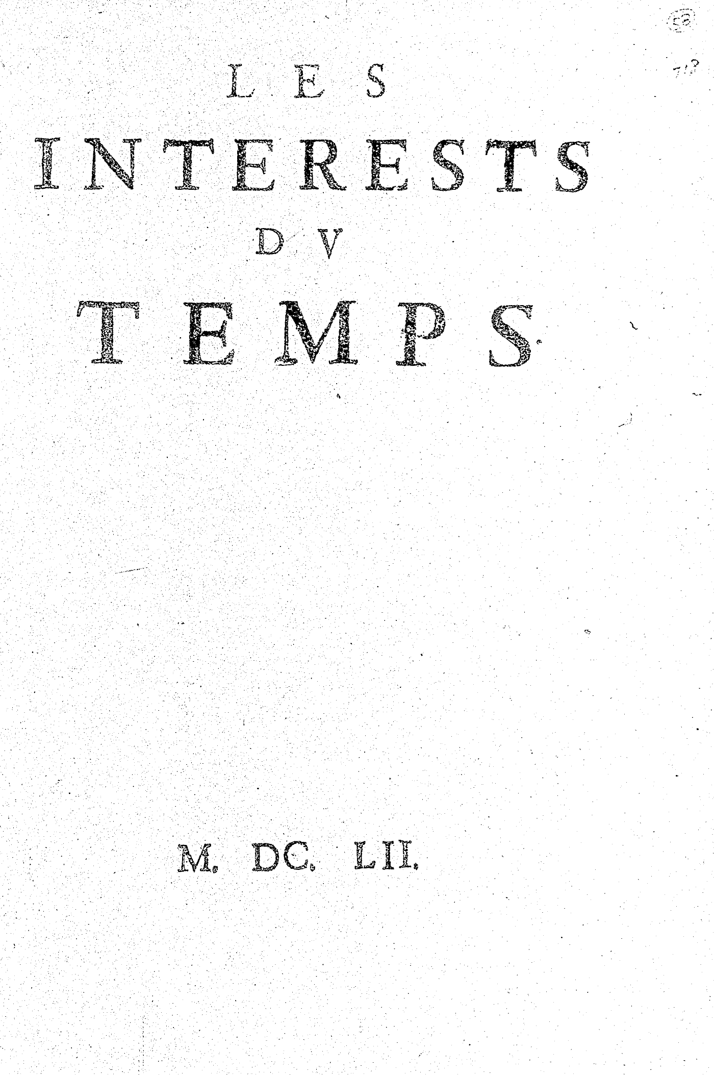 LES INTERESTS DV TEMPS. Auteur : Gondi, Jean-François Paul / cardinal de Retz [?]