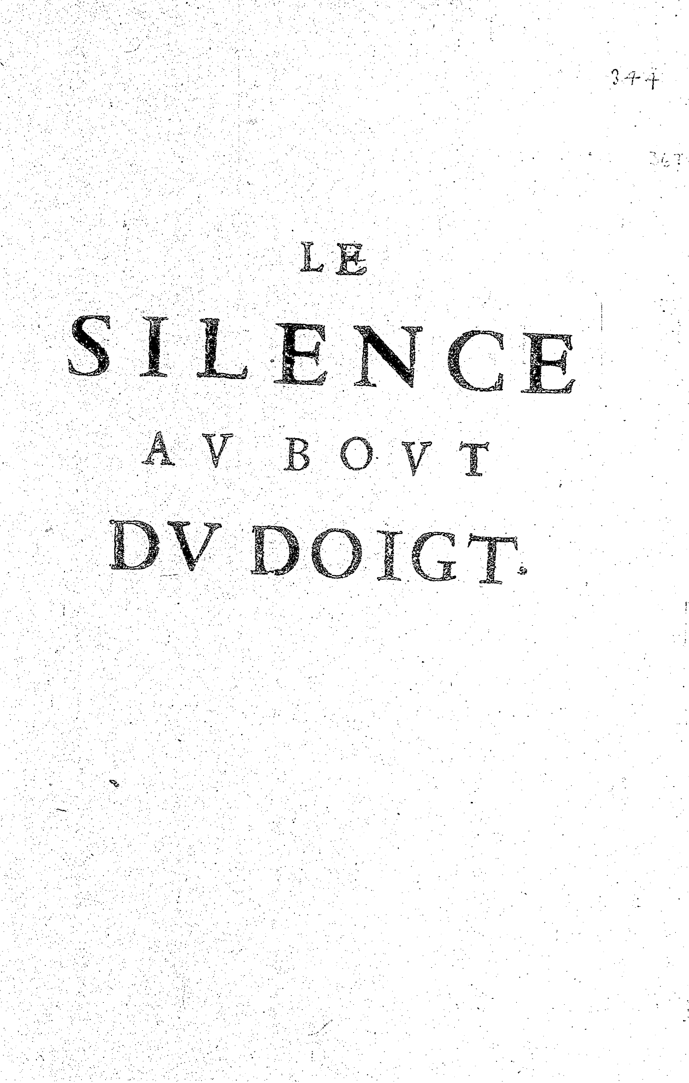 LE SILENCE AV BOVT DV DOIGT. Auteur : Anonyme