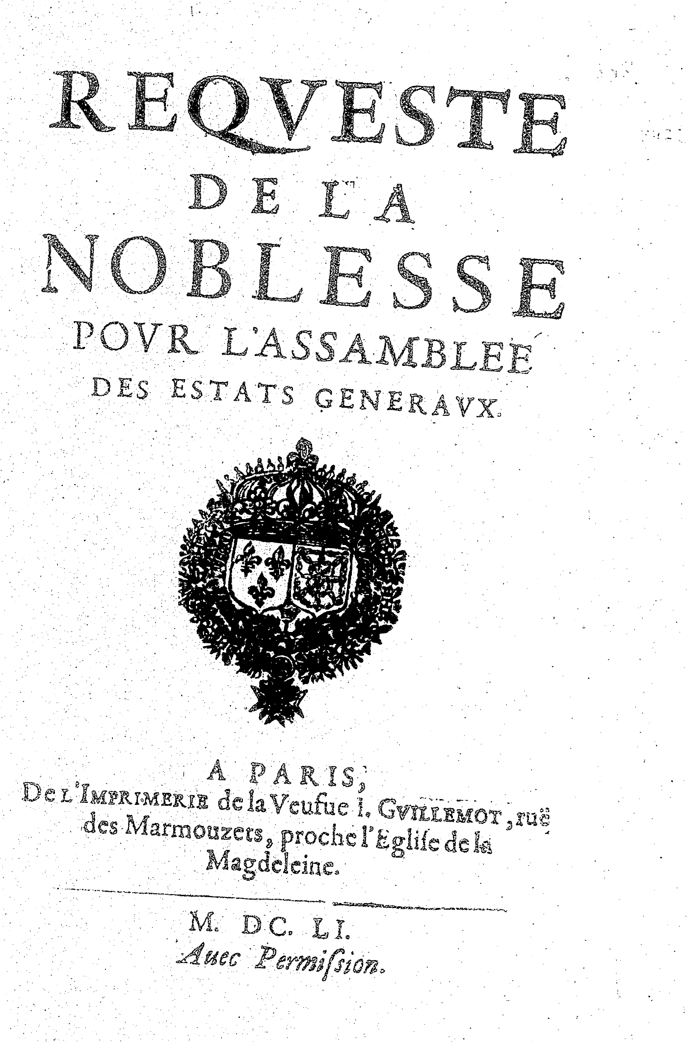 REQVESTE DE LA NOBLESSE POVR L’ASSAMBLEÉ DES ESTATS GENERAVX. Auteur : Anonyme
