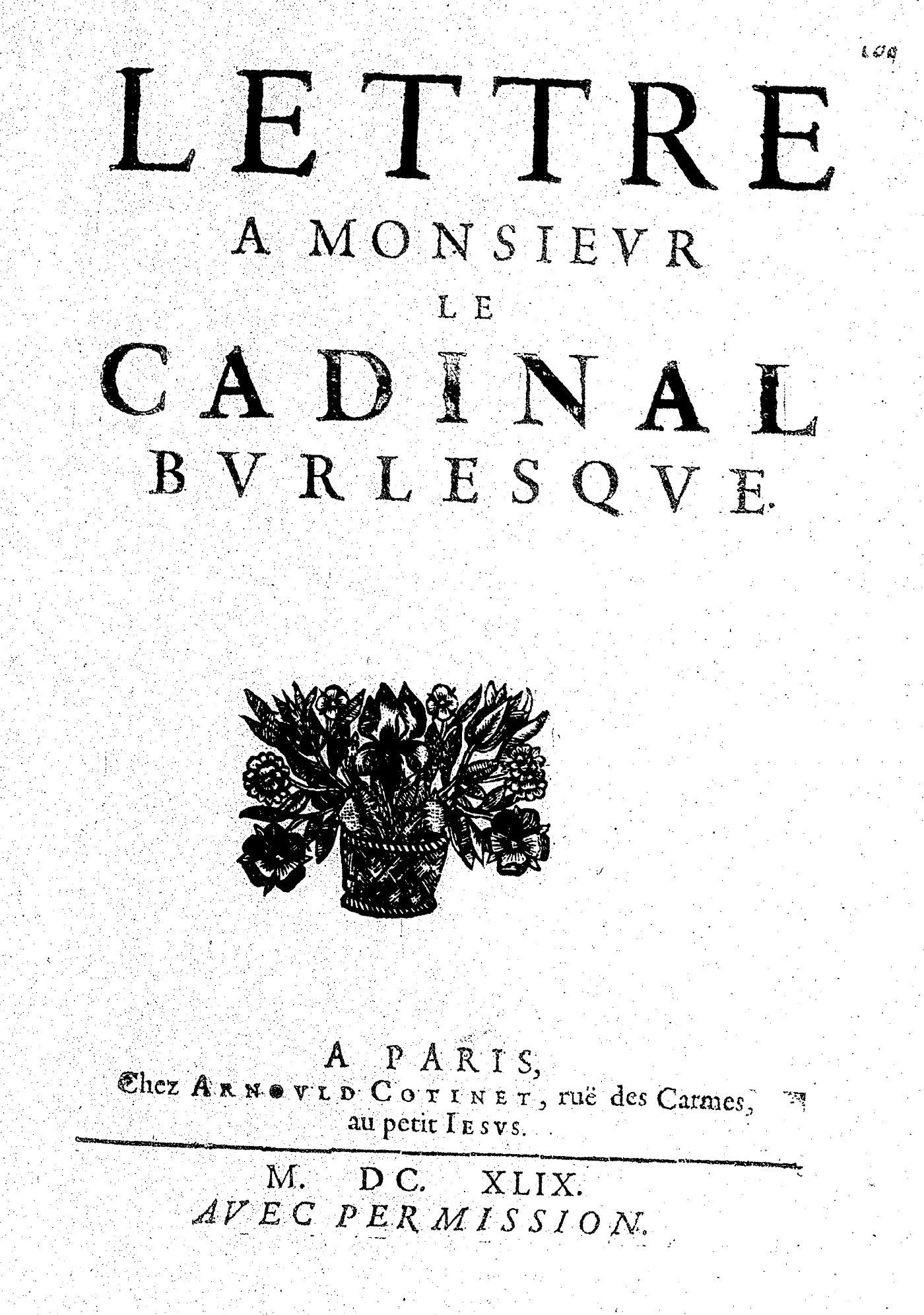LETTRE A MONSIEVR LE CARDINAL BVRLESQVE. Auteur : Le Dru, Nicolas [signé] = Laffemas, abbé Laurent de [?]