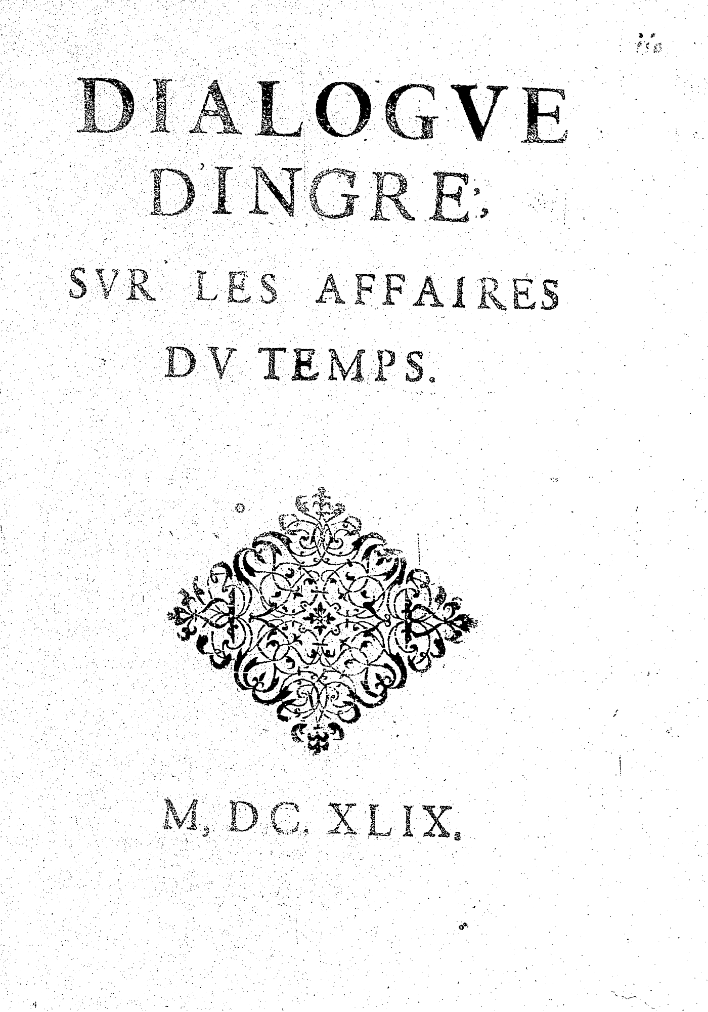 DIALOGVE D’INGRÉ, SVR LES AFFAIRES DV TEMPS. Auteur : Anonyme