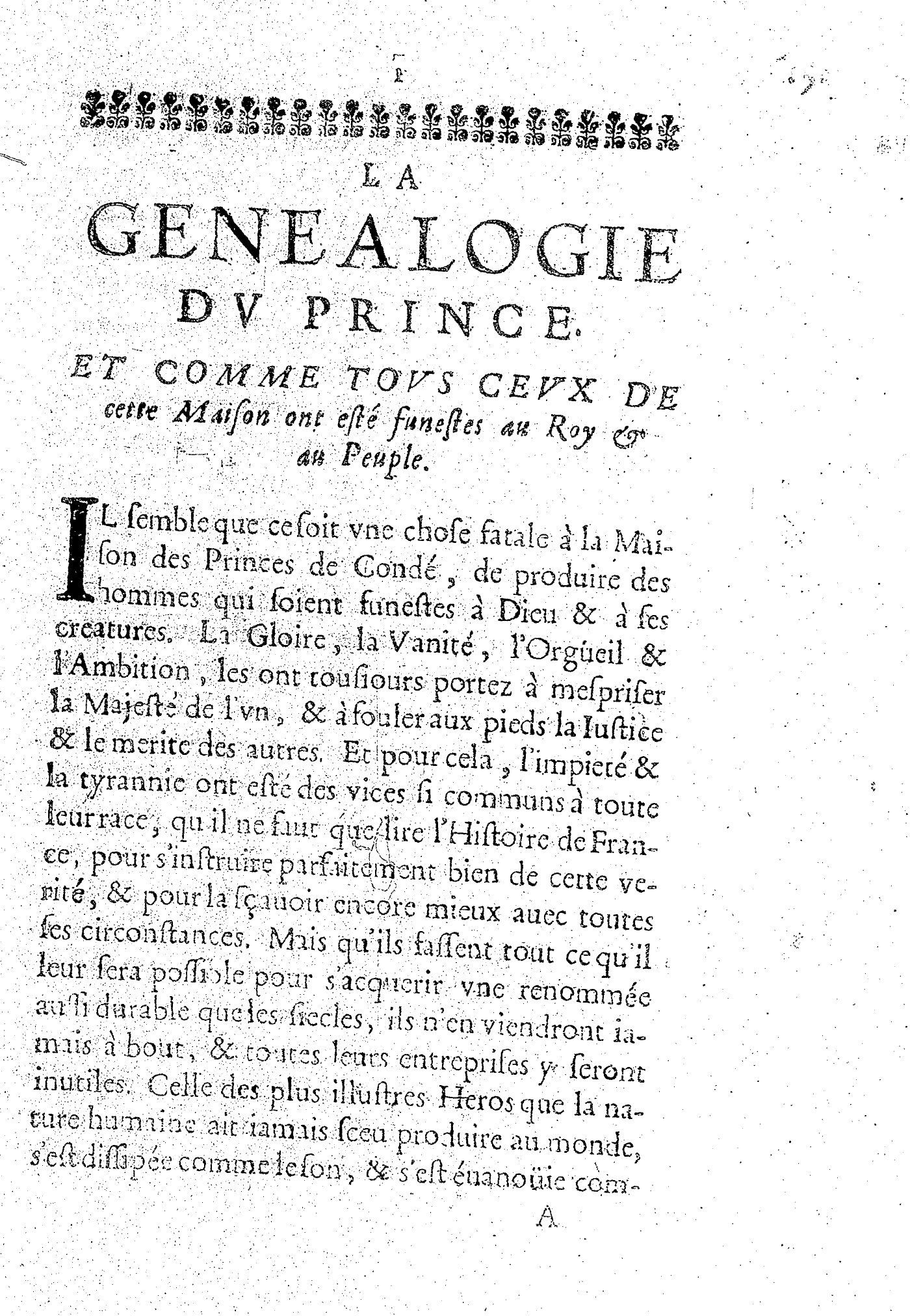LA GENEALOGIE DV PRINCE. ET COMME TOVS CEVX DE