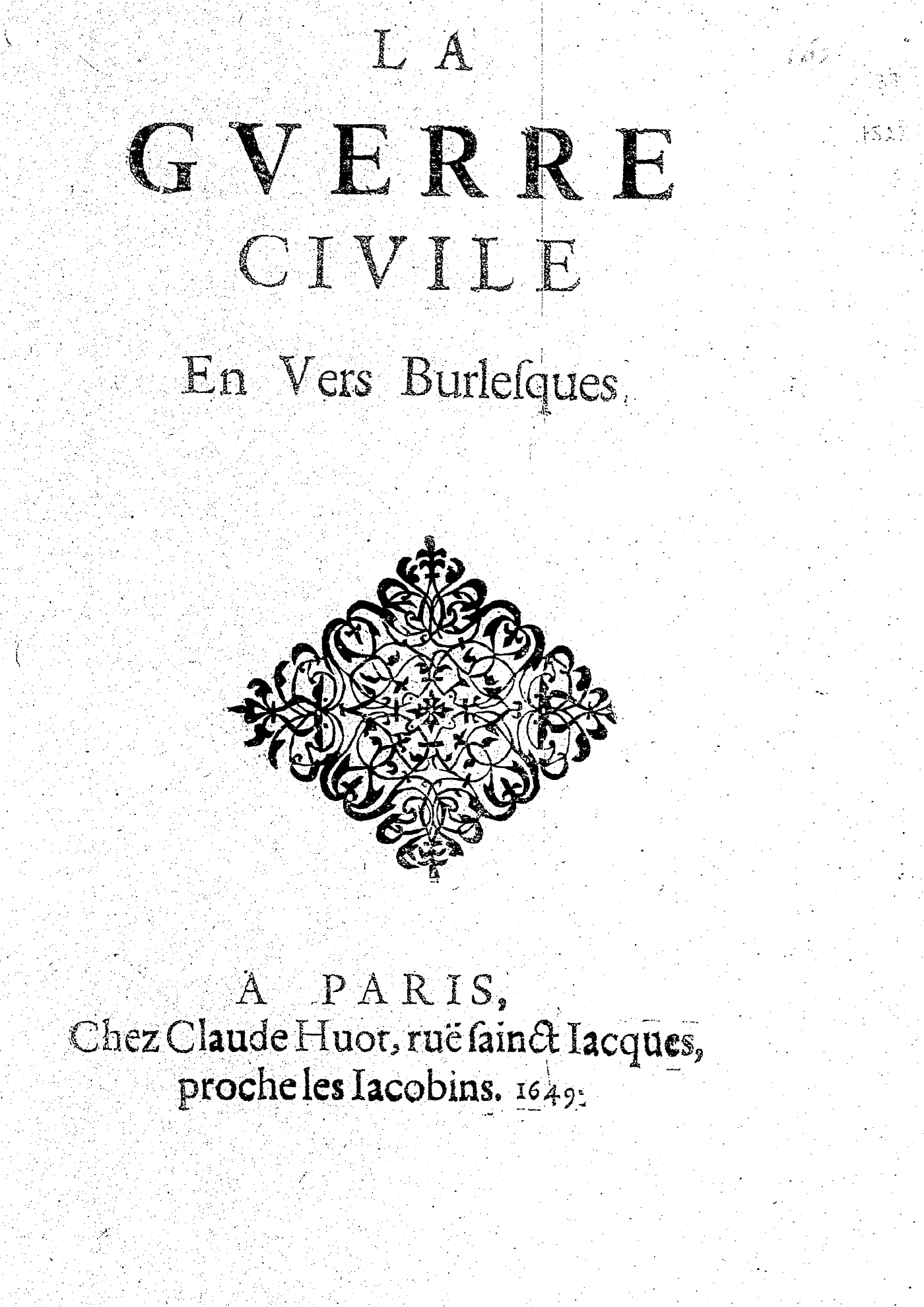 LA GVERRE CIVILE En Vers Burlesques. Auteur : Laffemas, abbé Laurent de [?]