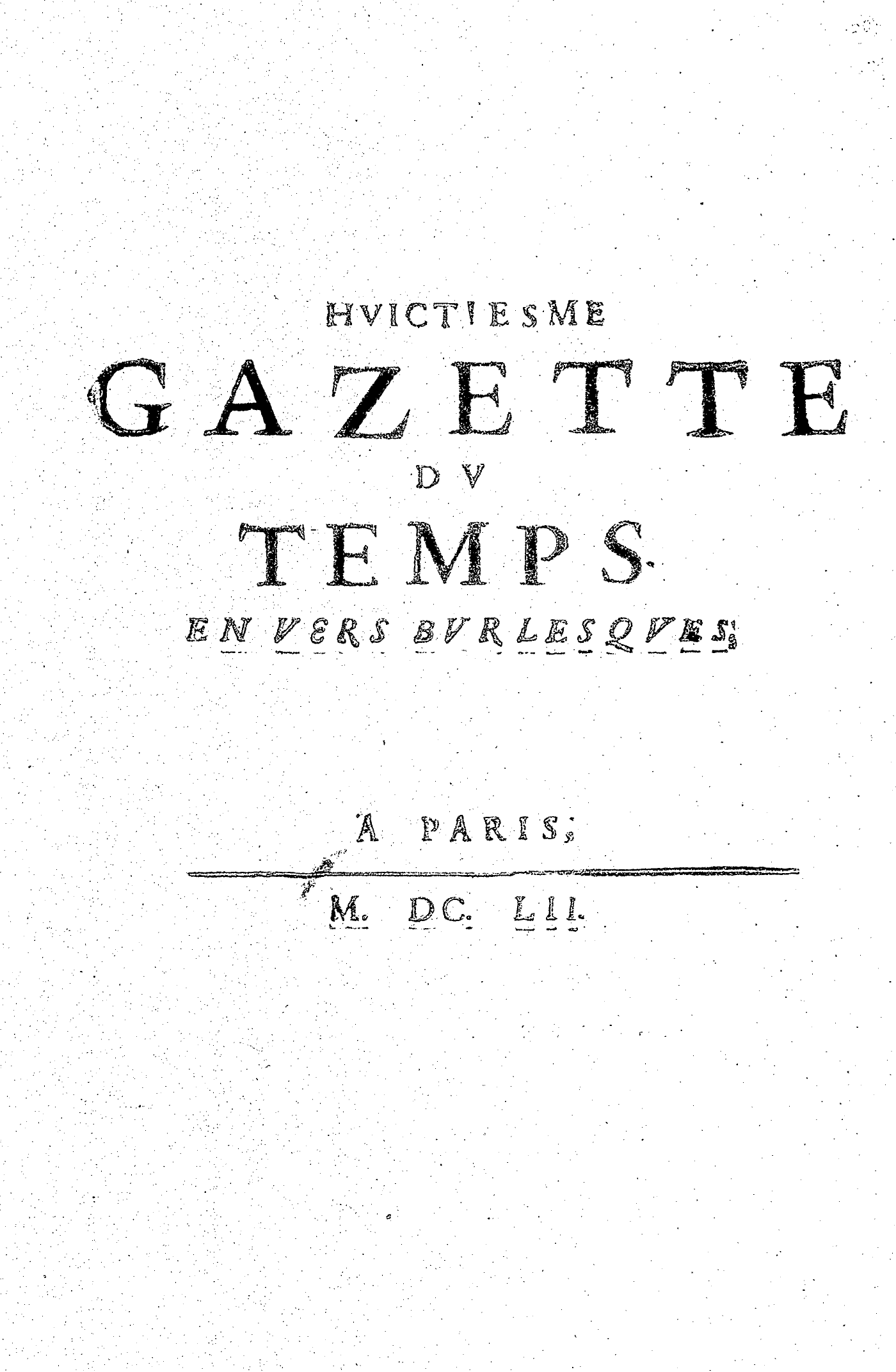 HVICTIESME GAZETTE DV TEMPS. EN VERS BVRLESQVES.