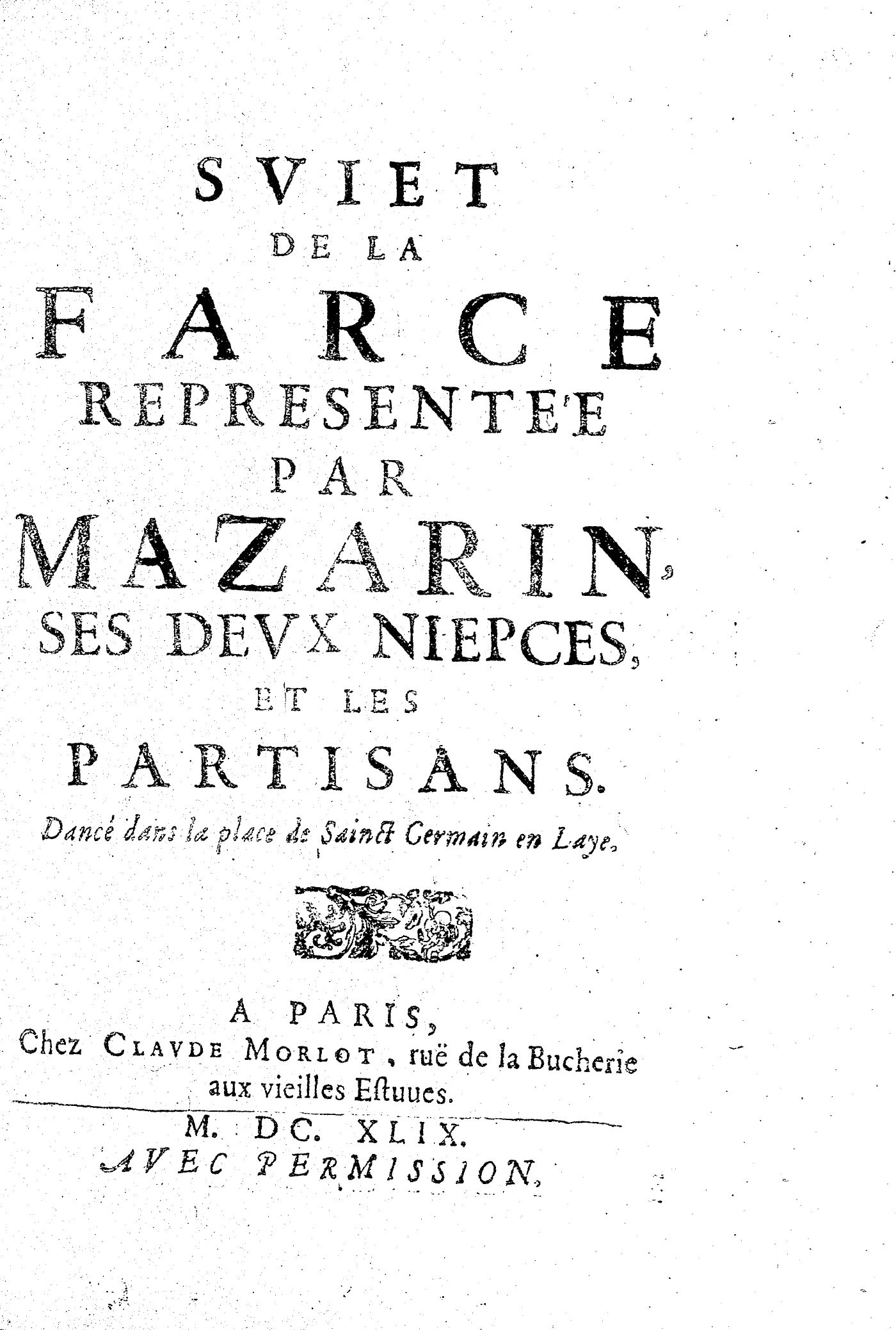 SVIET DE LA FARCE REPRESENTEE PAR MAZARIN, SES DEVX NIEPCES, ET LES PARTISANS. Dancé dans la place de Sainct Germain en Laye