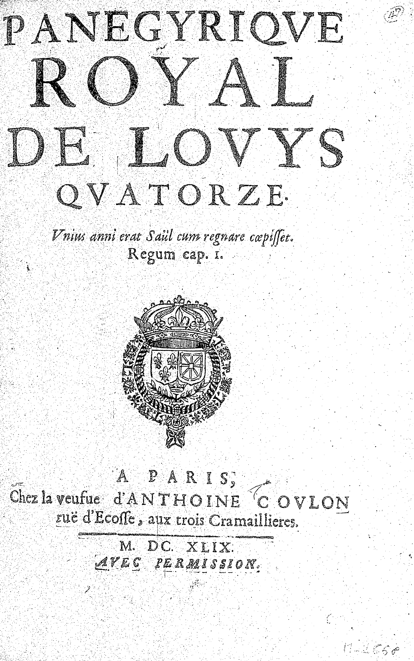 PANEGYRIQVE ROYAL DE LOVYS QVATORZE. Vnius anni erat Saül cum regnare cœpisset. Regum cap. I.