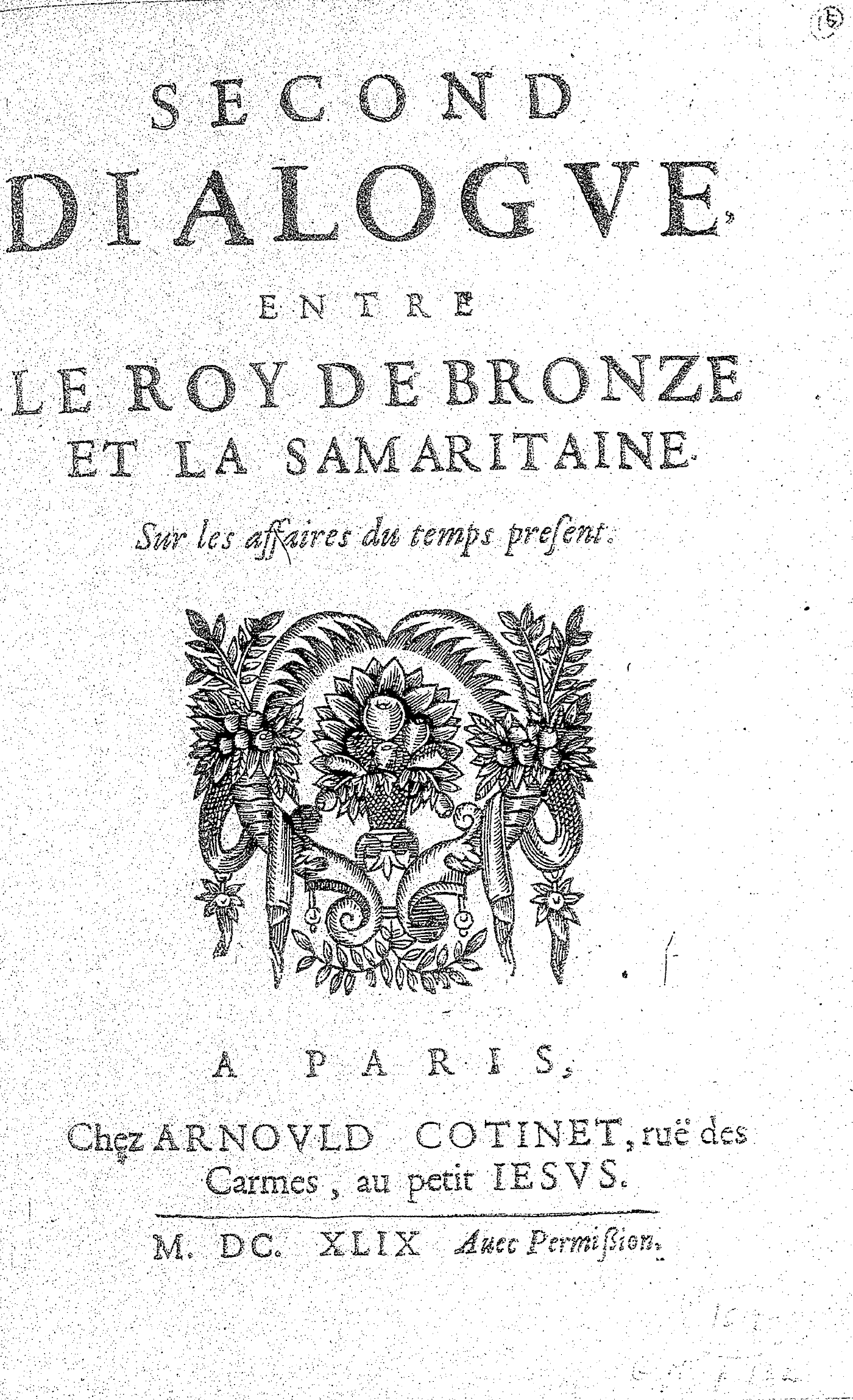 SECOND DIALOGVE, ENTRE LE ROY DE BRONZE ET LA SAMARITAINE. Sur les affaires du temps present.