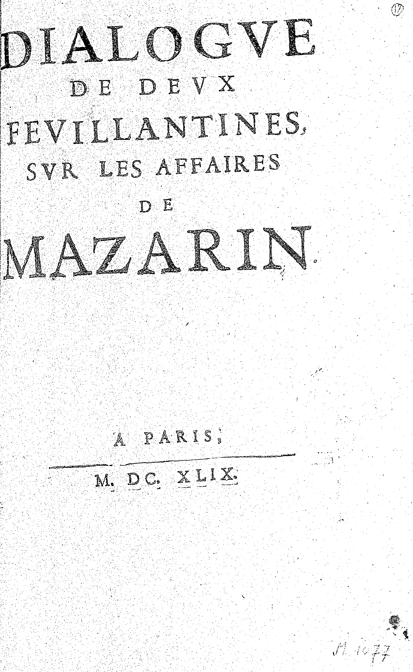 DIALOGVE DE DEVX FEVILLANTINES, SVR LES AFFAIRES DE MAZARIN.