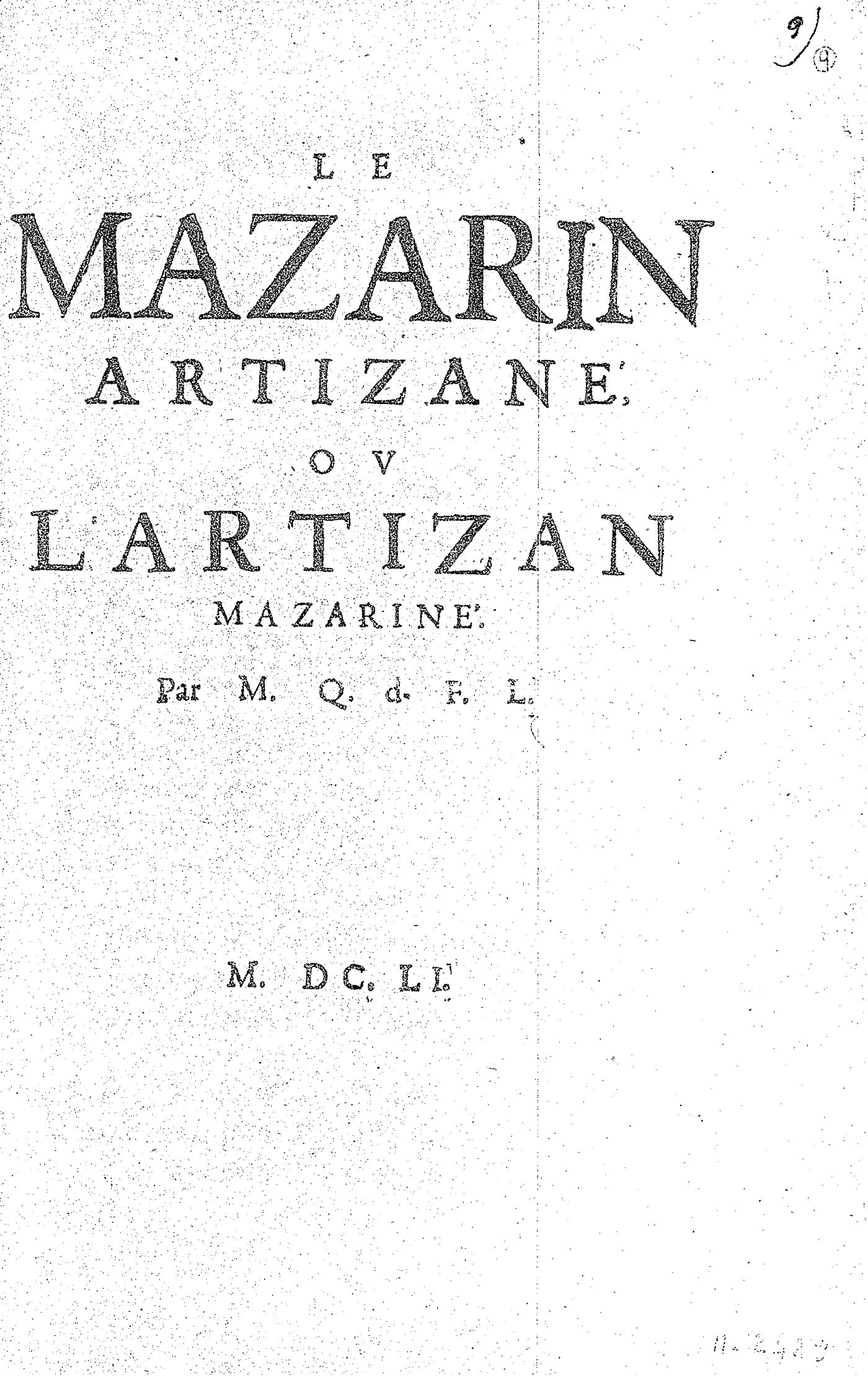 LE MAZARIN ARTIZANÉ, OV L’ARTIZAN MAZARINÉ. Par M. Q. d. F. L.