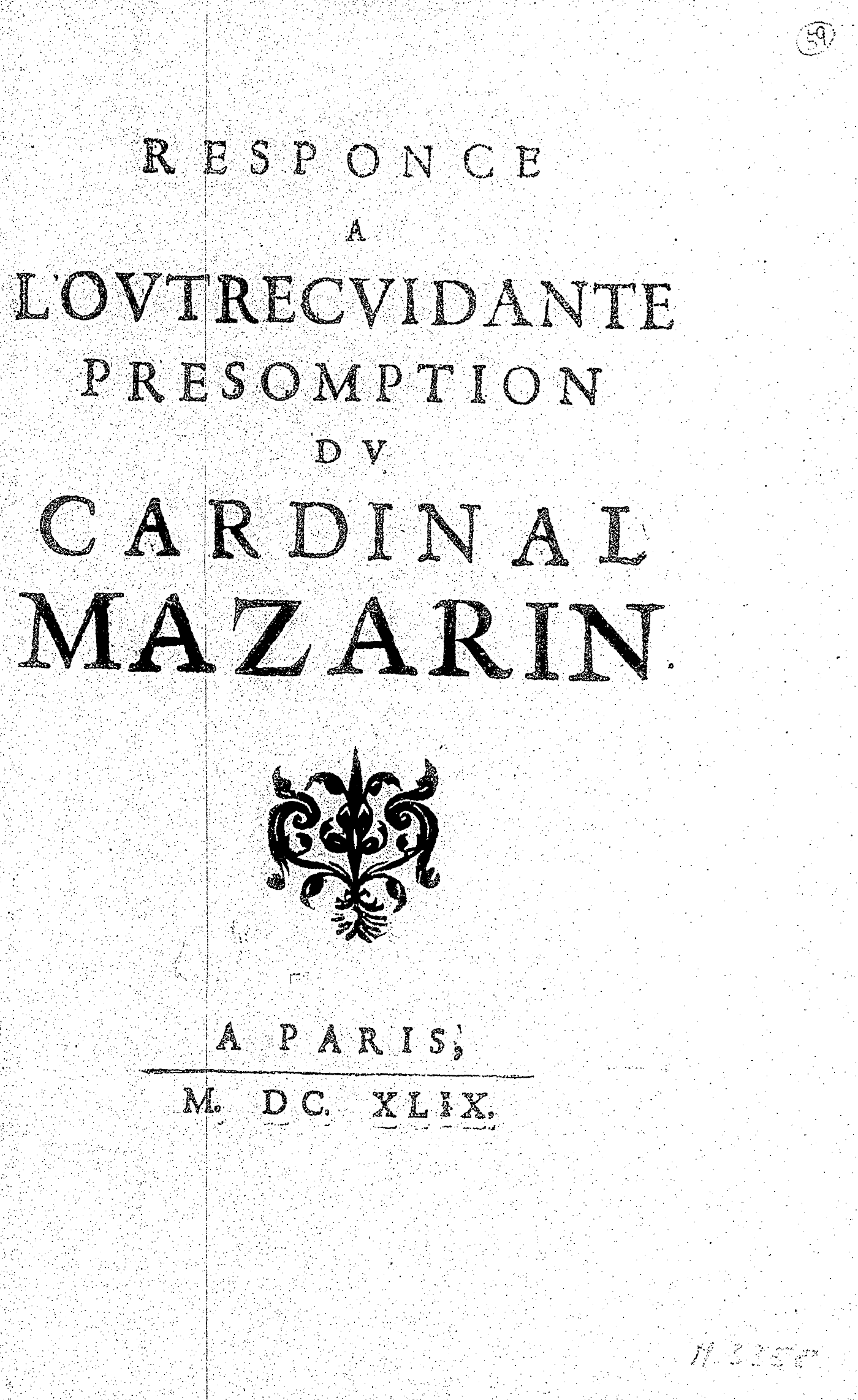 RESPONCE A L’OVTRECVIDANTE PRESOMPTION DV CARDINAL MAZARIN.