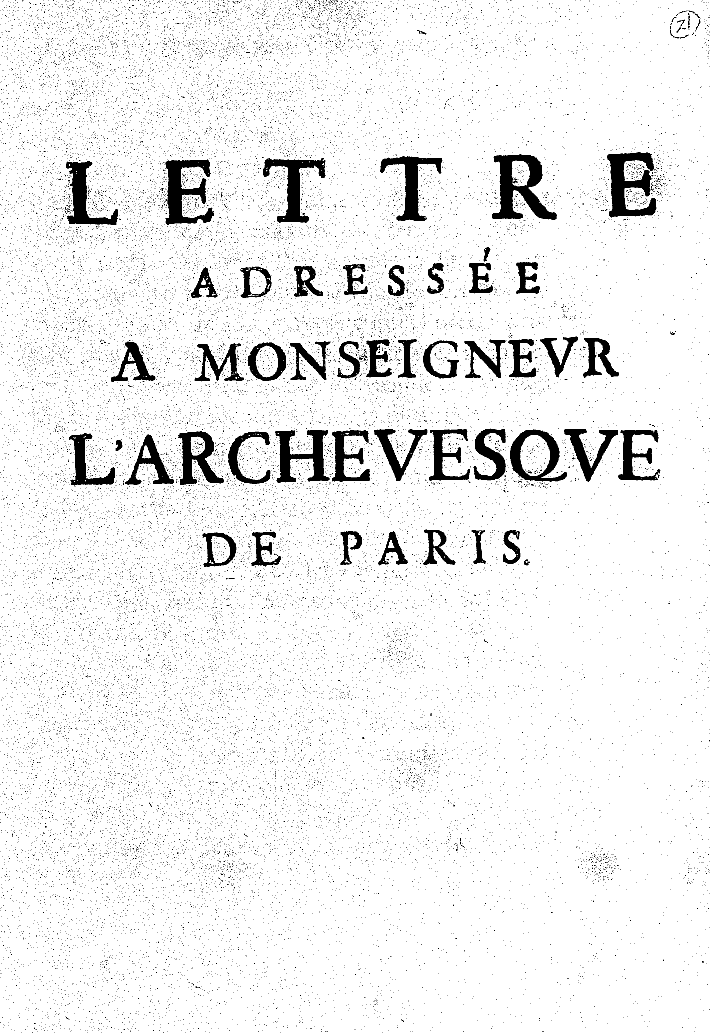 LETTRE ADRESSÉE A MONSEIGNEVR L’ARCHEVESQVE DE PARIS.
