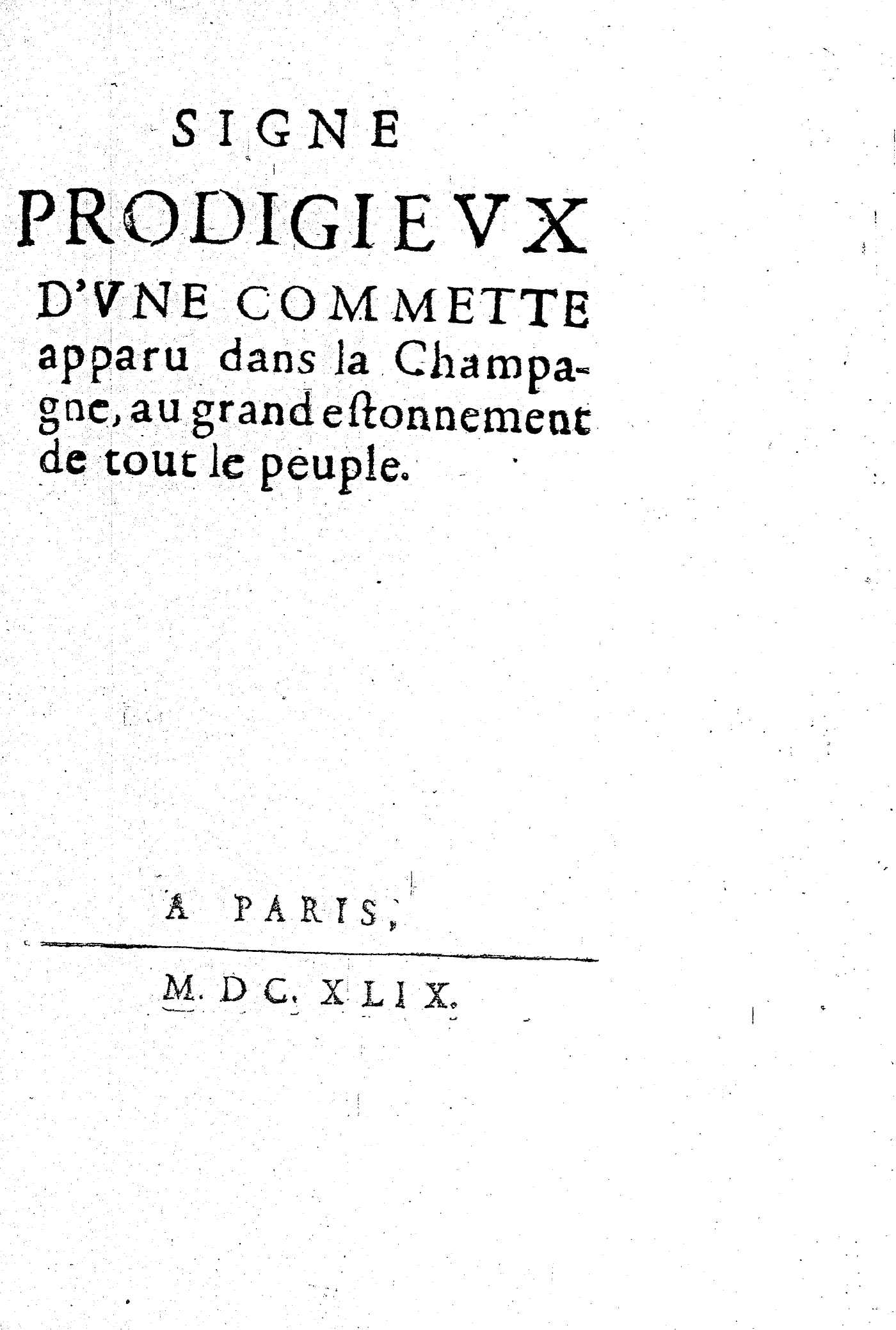 SIGNE PRODIGIEVX D’VNE COMMETTE apparu dans la Champagne, au grand estonnement de tout le peuple.