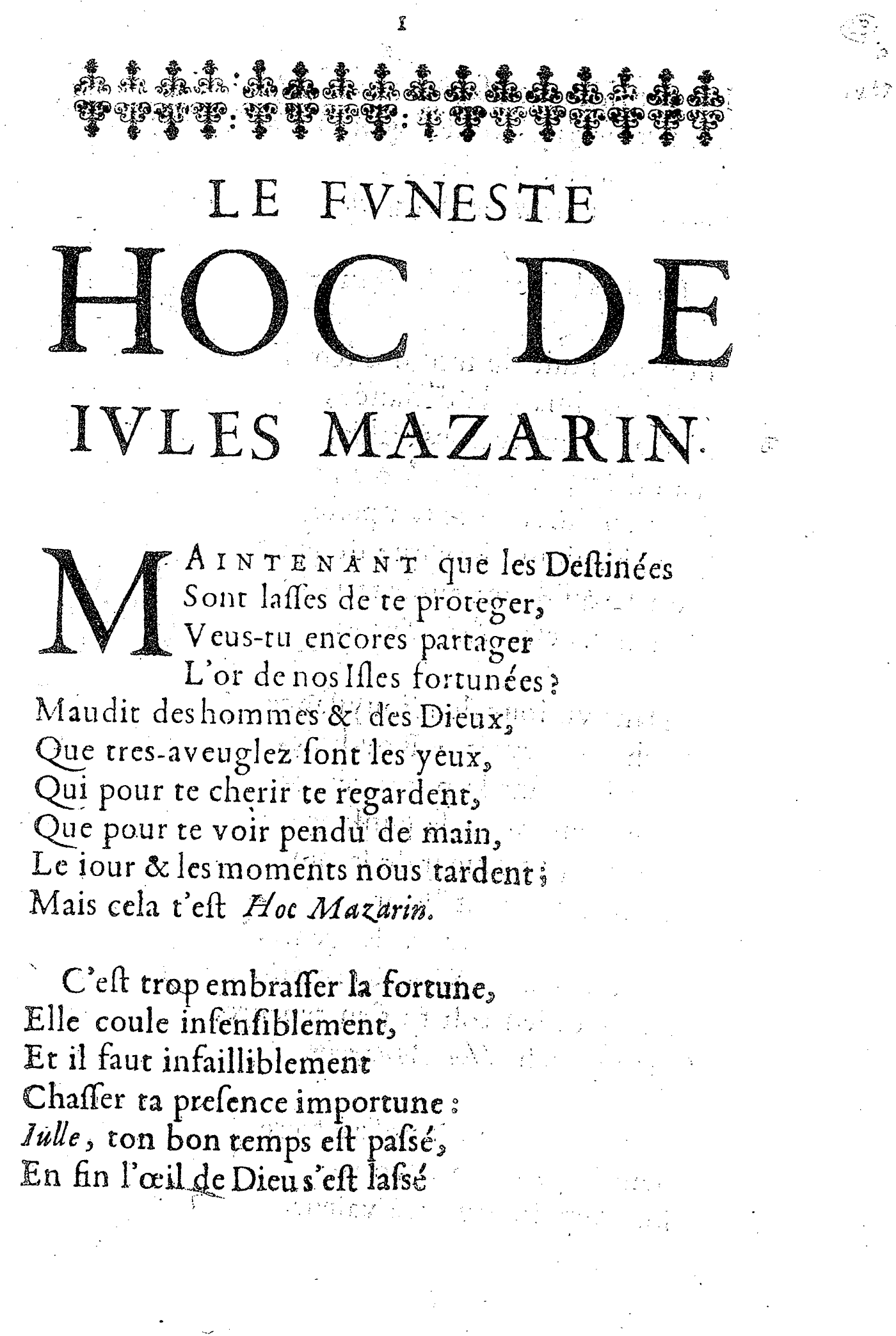 LE FVNESTE HOC DE IVLES MAZARIN.