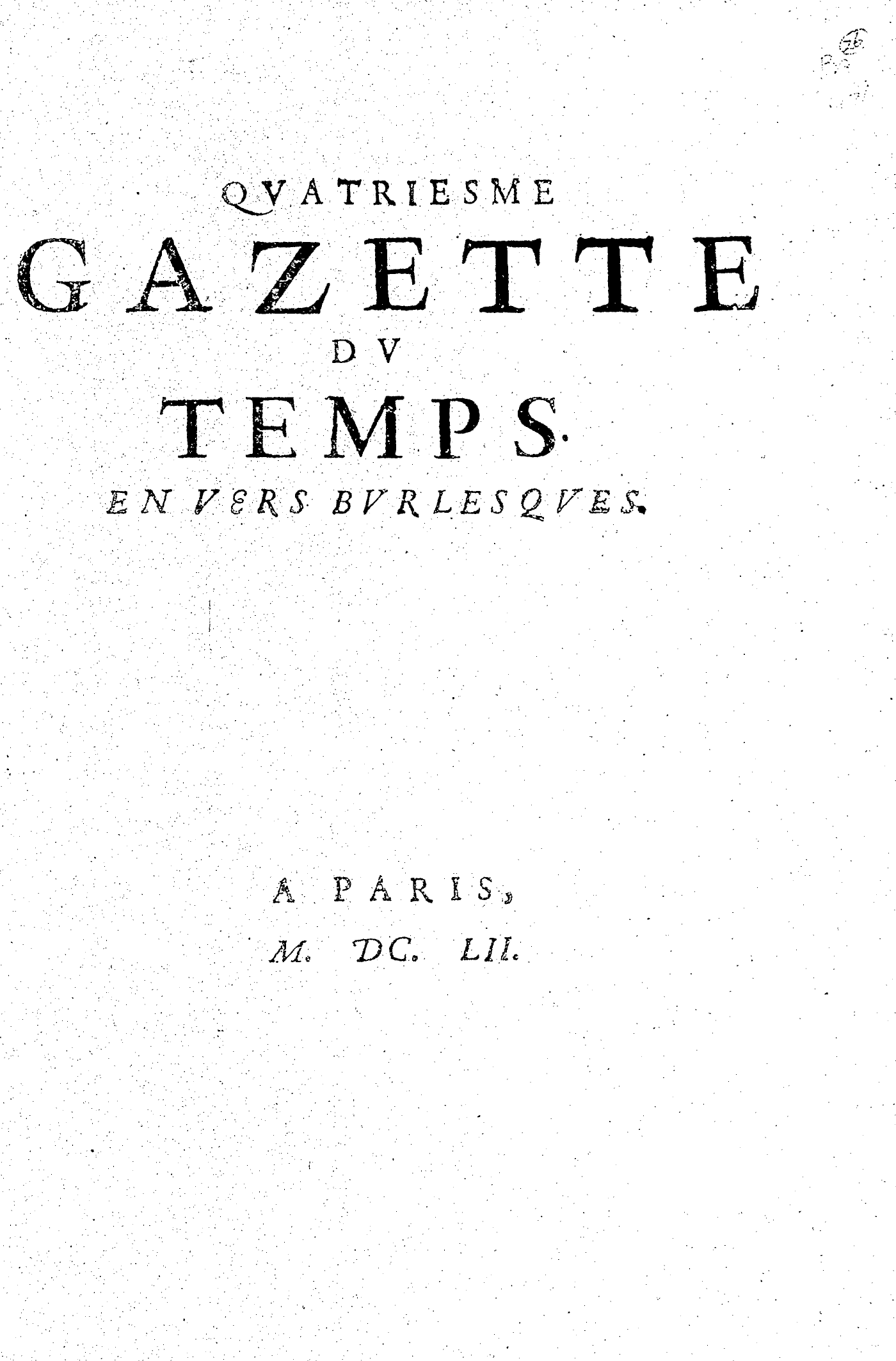QVATRIESME GAZETTE DV TEMPS. EN VERS BVRLESQVES.
