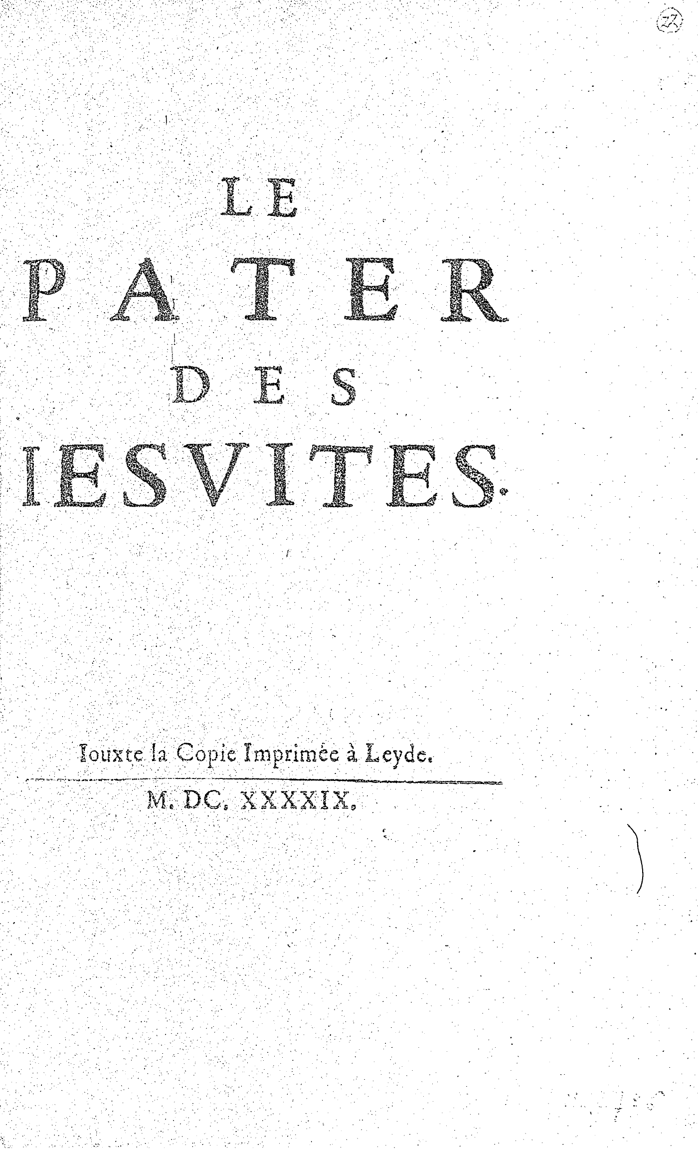 LE PATER DES IESVITES. Iouxte la Copie Imprimée à Leyde.