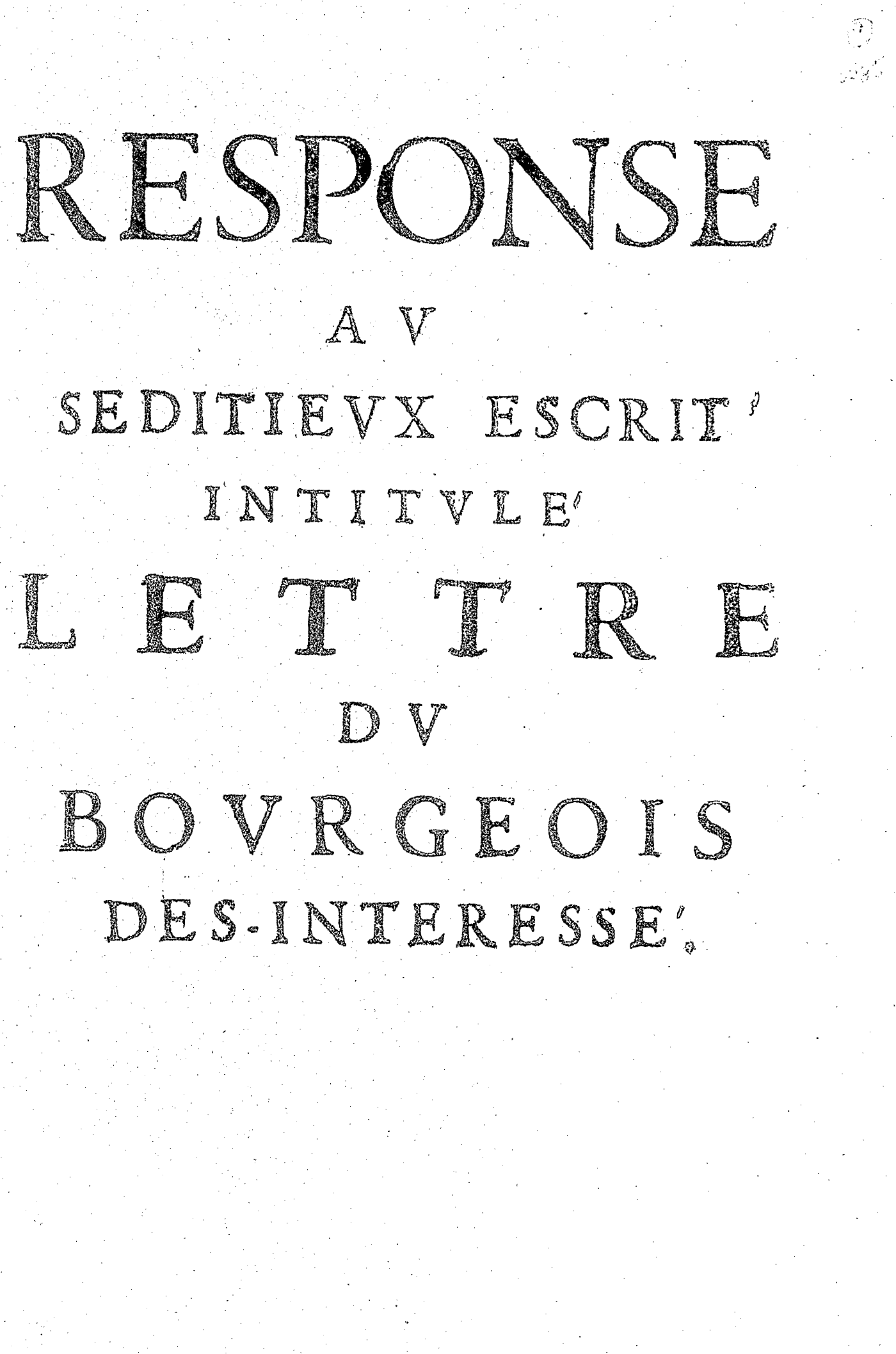 RESPONSE AV SEDITIEVX ESCRIT INTITVLÉ LETTRE DV BOVRGEOIS DES-INTERESSÉ.