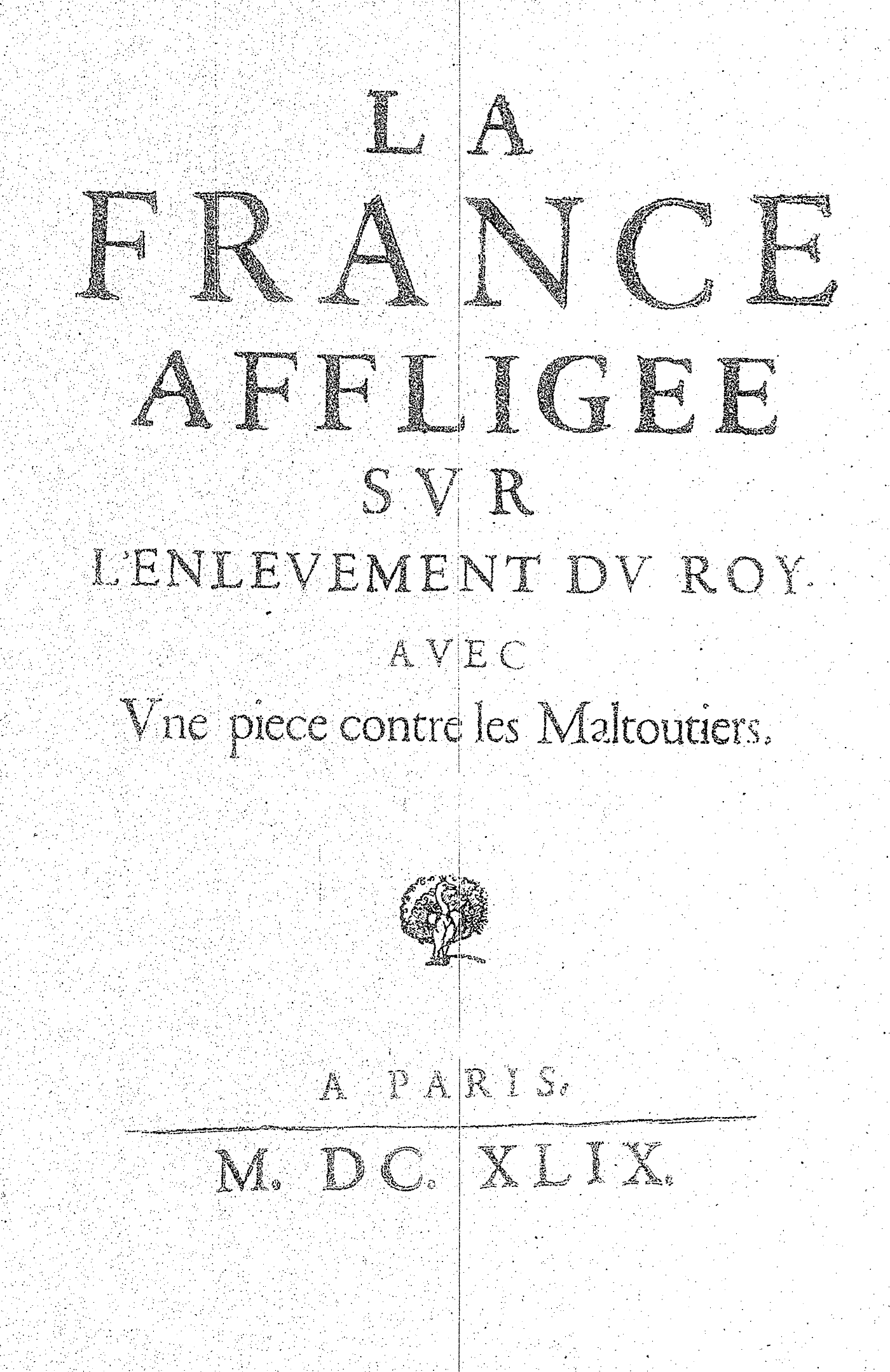 LA FRANCE AFFLIGEE SVR L'ENLEVEMENT DV ROY. AVEC Vne piece contre les Maltoutiers.