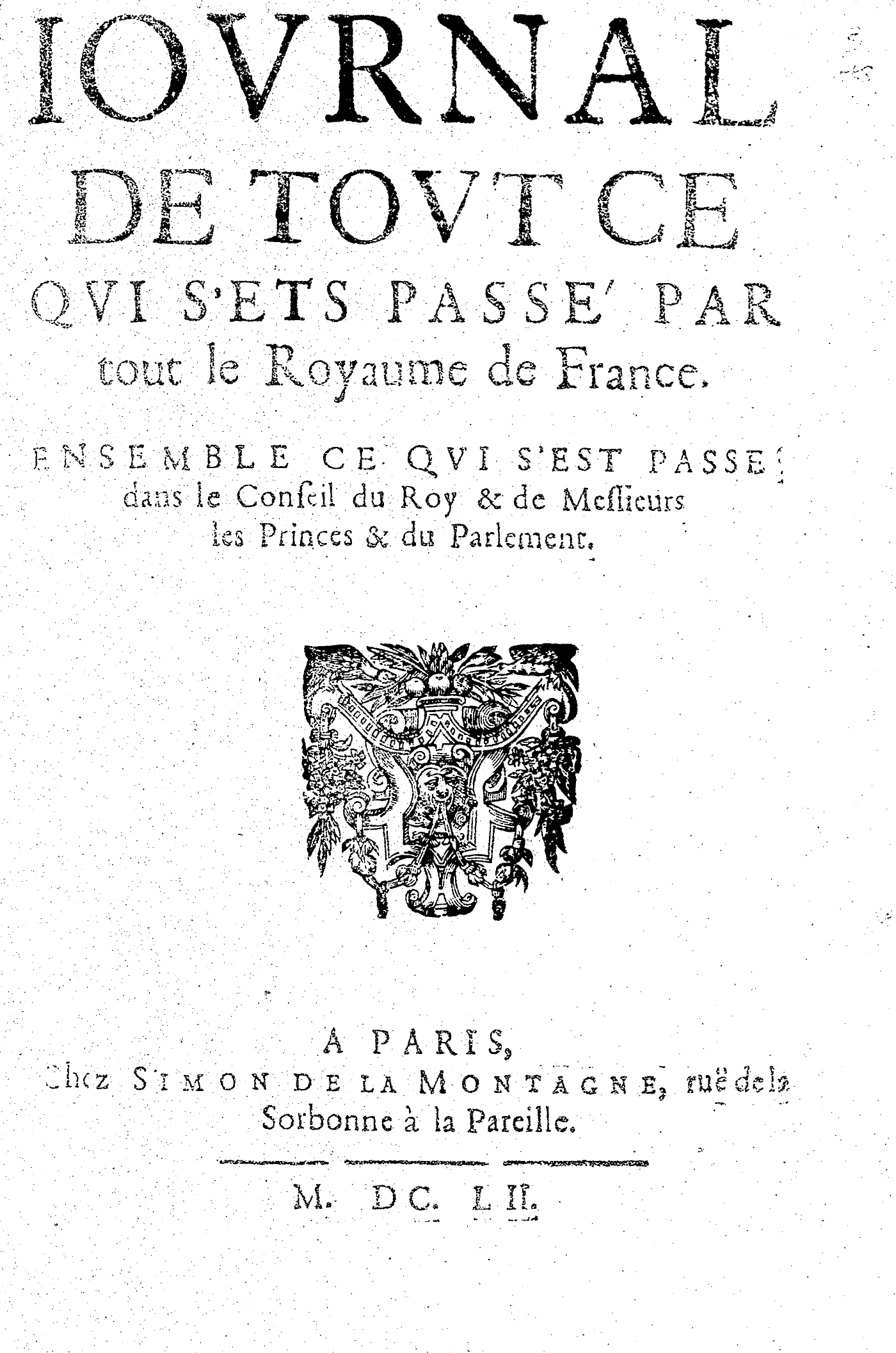 IOVRNAL DE TOVT CE QVI S’EST PASSÉ PAR tout le Royaume de France. ENSEMBLE CE QVI S’EST PASSE