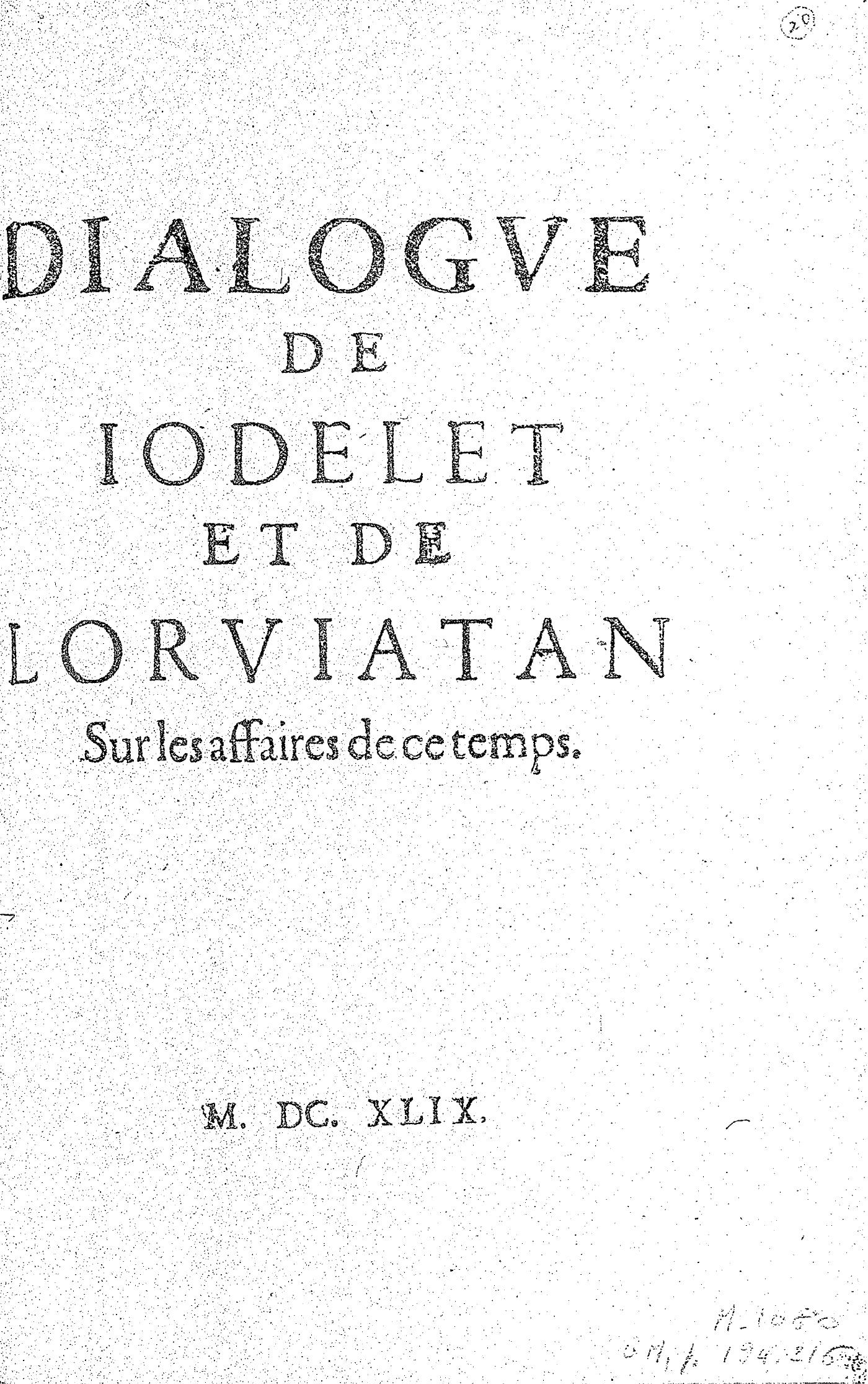 DIALOGVE DE IODELET ET DE LORVIATAN Sur les affaires de ce temps.
