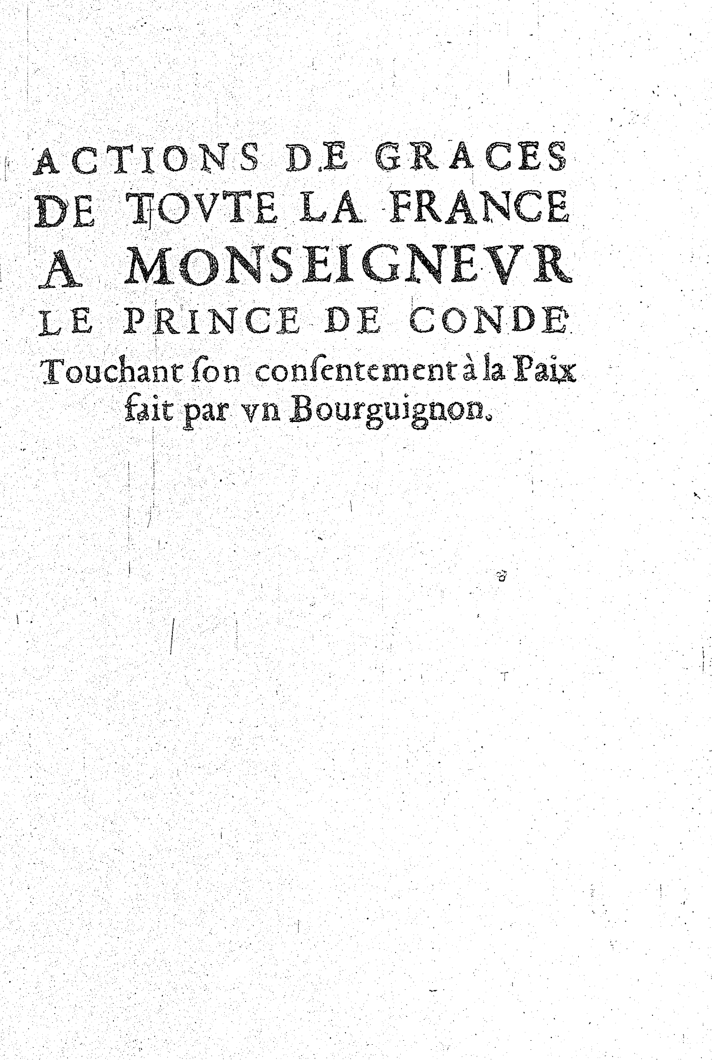 ACTIONS DE GRACES DE TOVTE LA FRANCE A MONSEIGNEVR LE PRINCE DE CONDE Touchant son consentement à la Paix fait par vn Bourguignon.