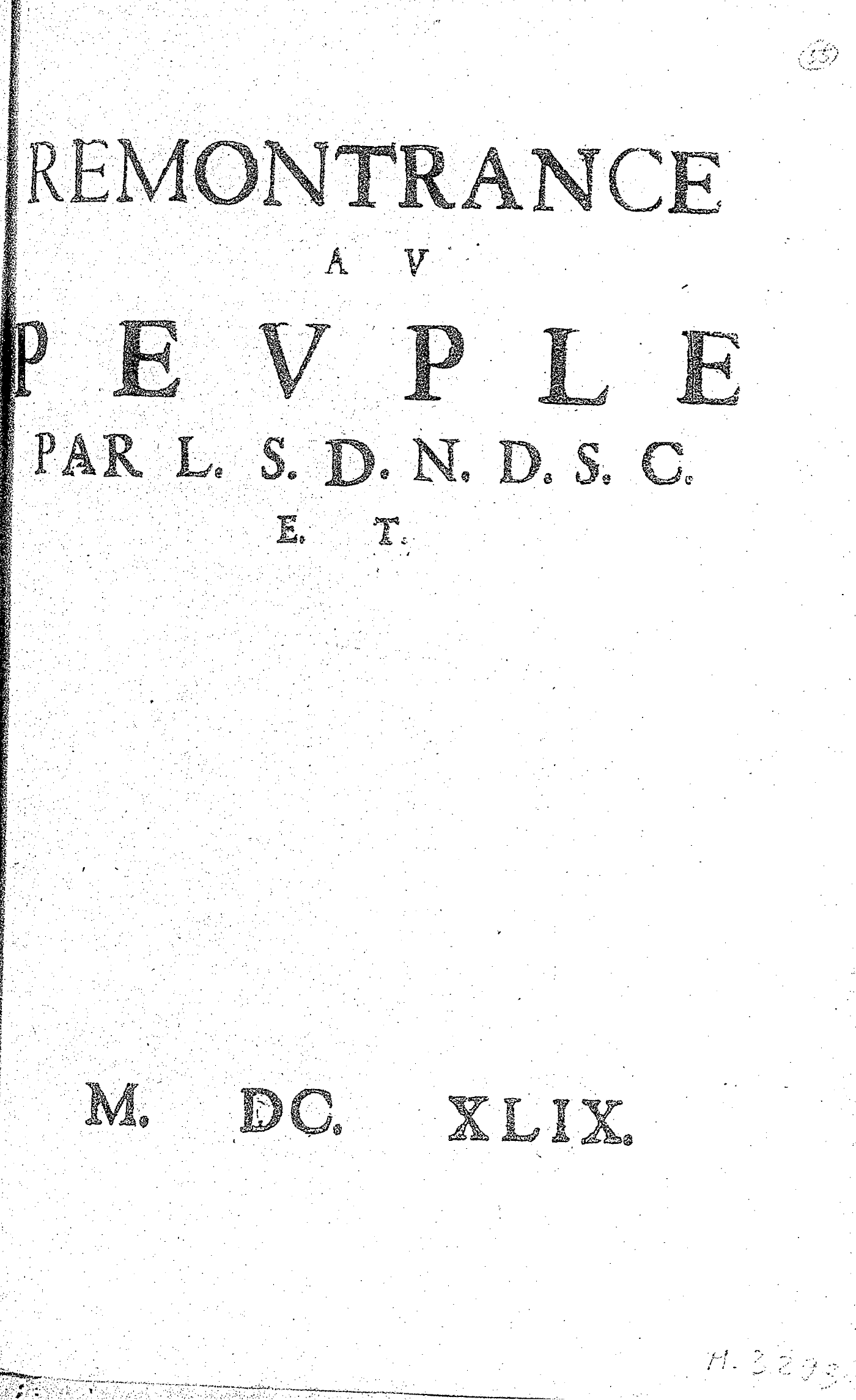 REMONTRANCE AV PEVPLE PAR L. S. D. N. D. S. C. E. T.