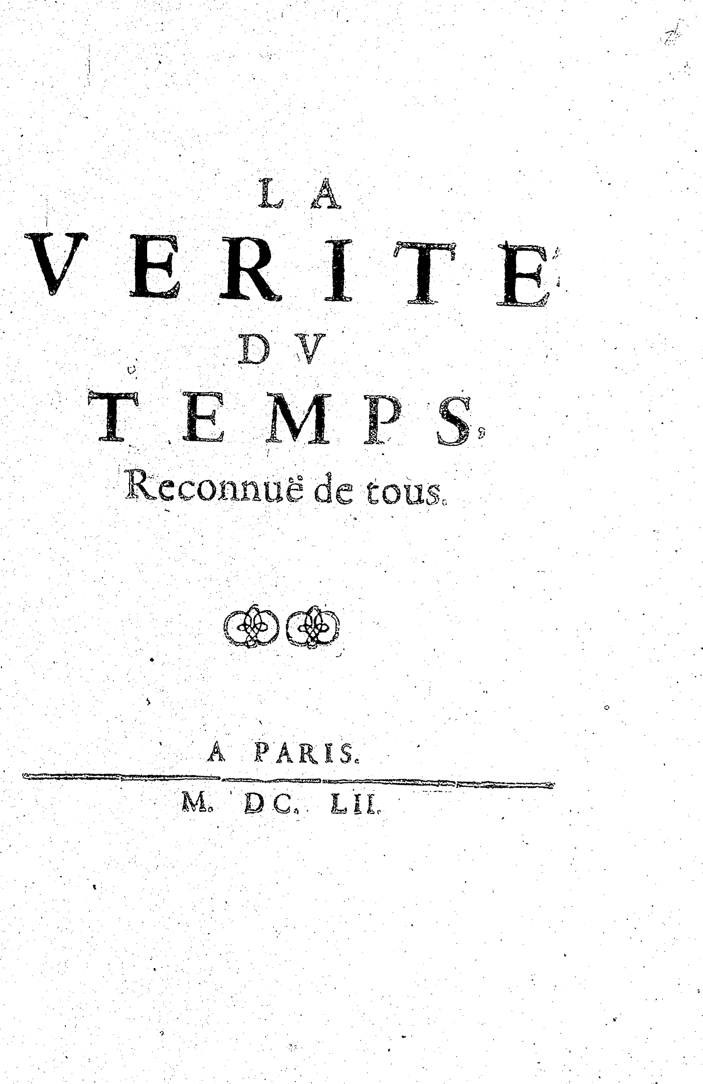 LA VERITÉ DV TEMPS, Reconnuë de tous.
