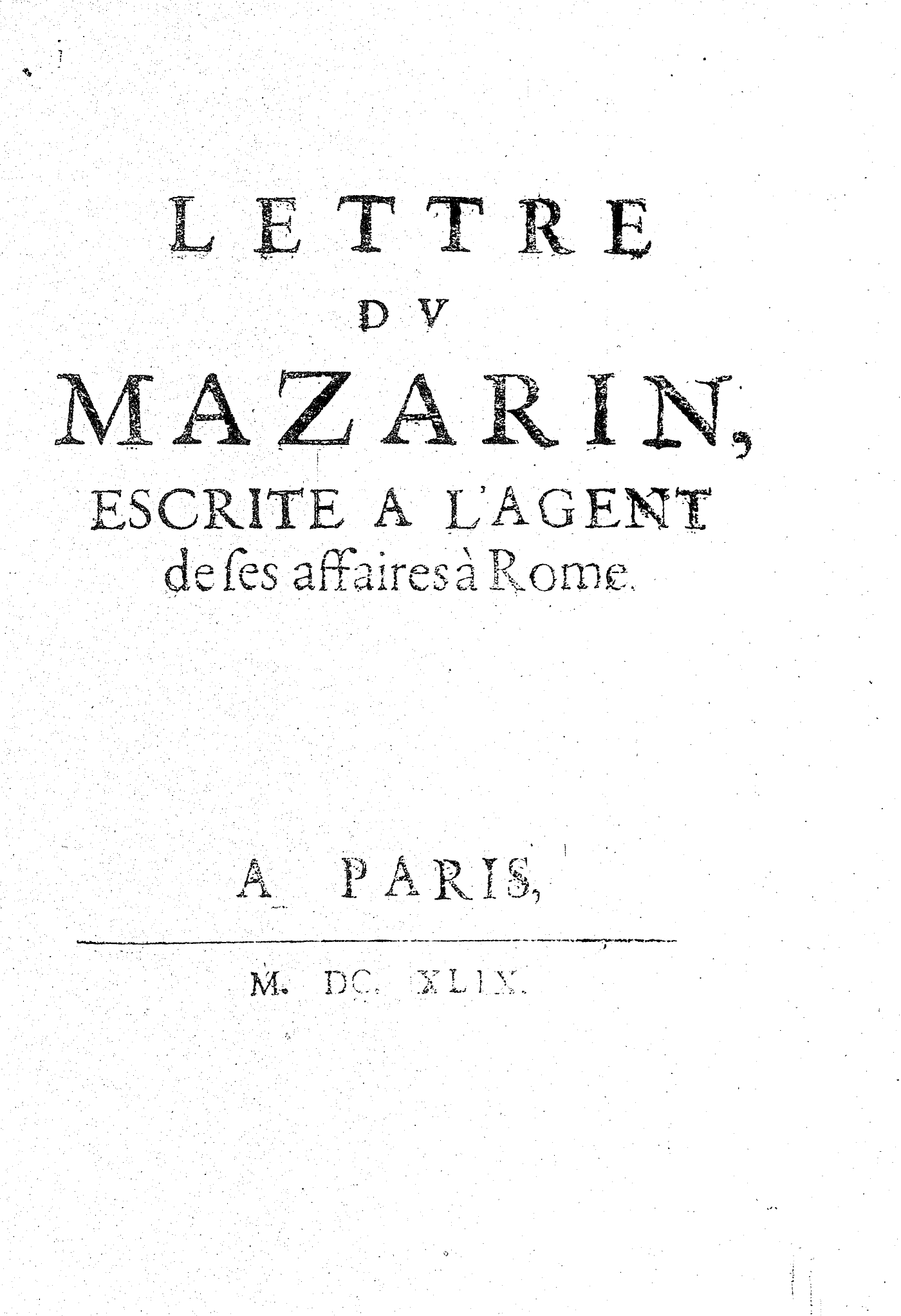 LETTRE DV MAZARIN, ESCRITE A L’AGENT de ses affaires à Rome.