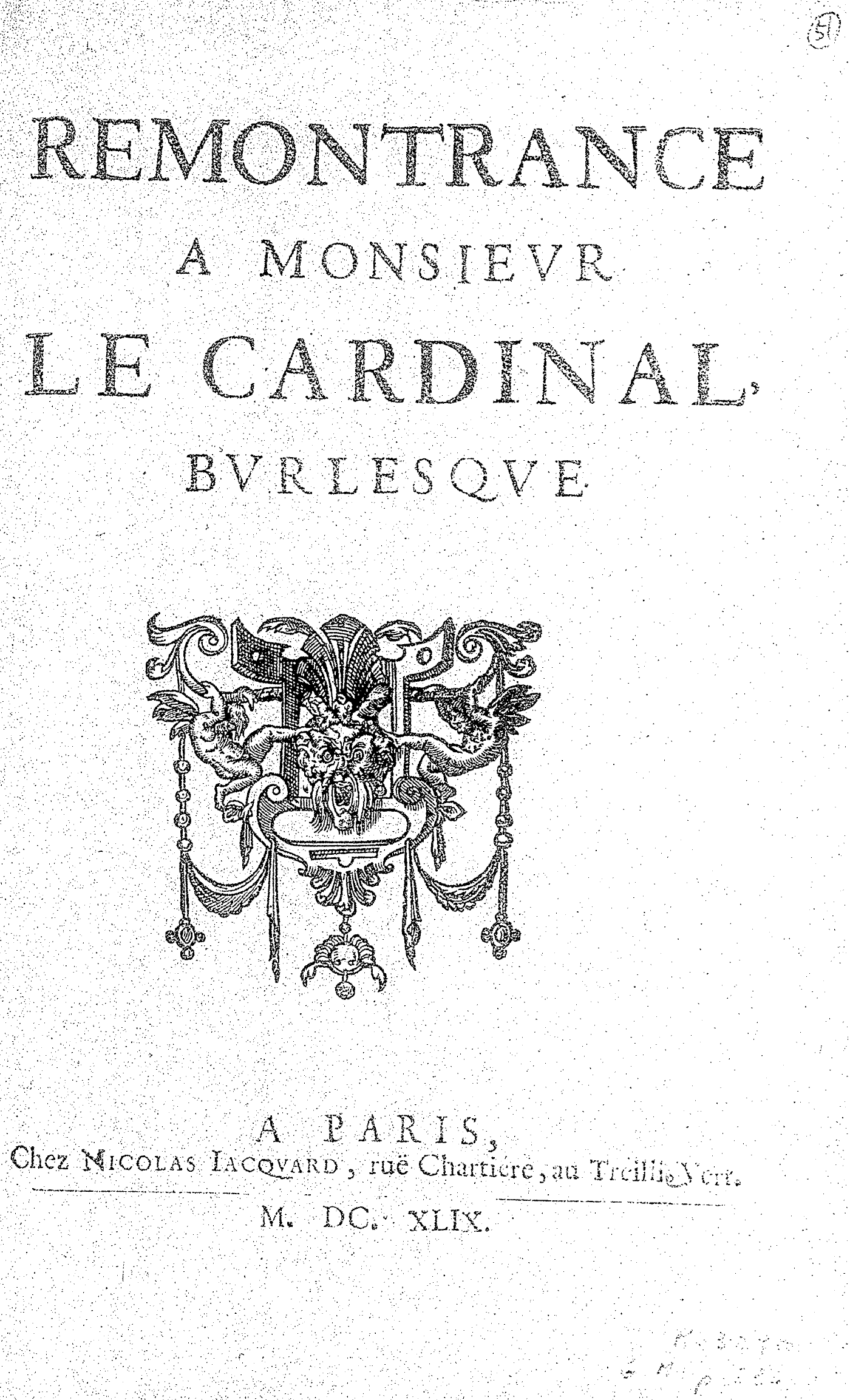 REMONTRANCE A MONSIEVR LE CARDINAL, BVRLESQVE.