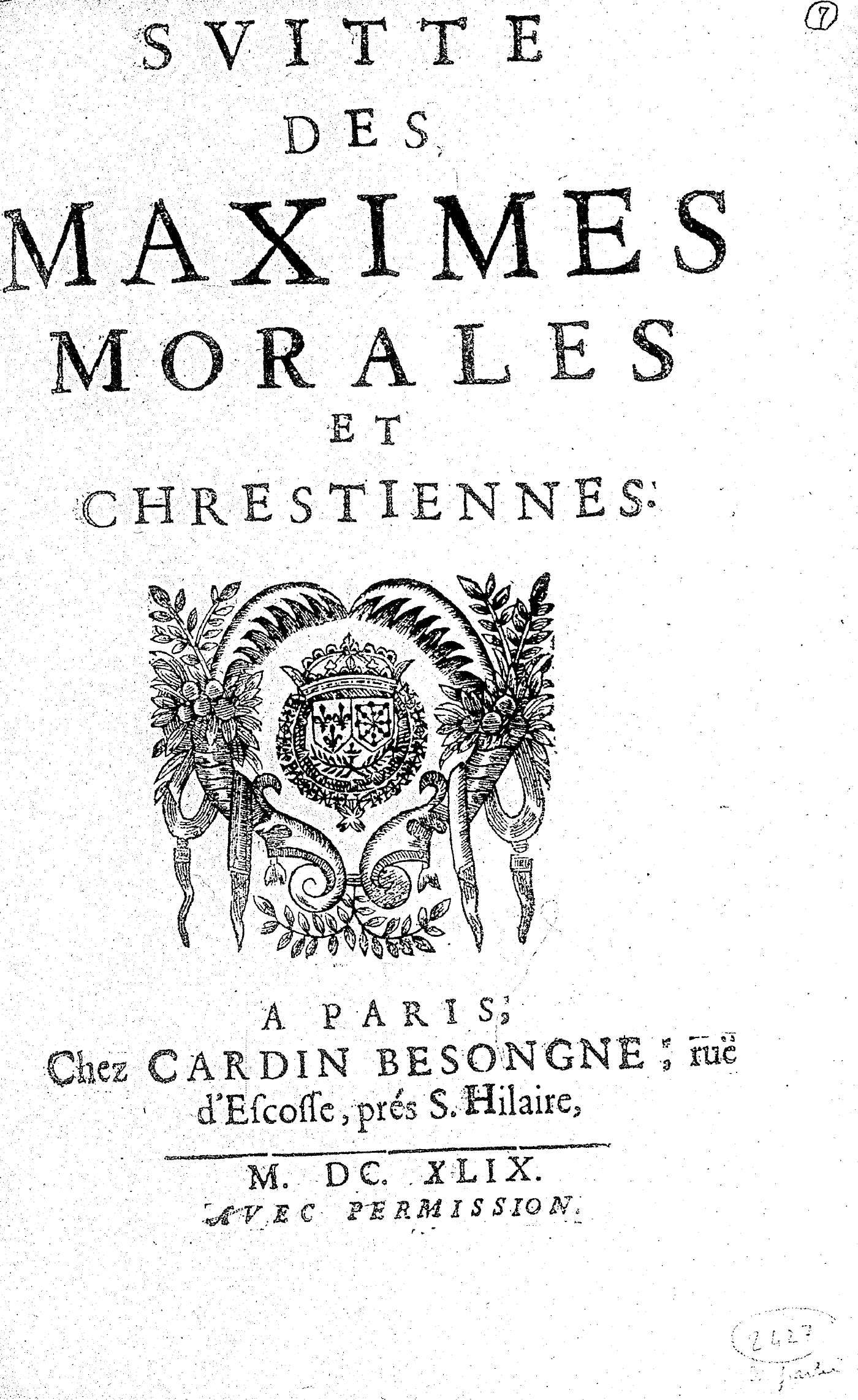 SVITTE DES MAXIMES MORALES ET CHRESTIENNES.