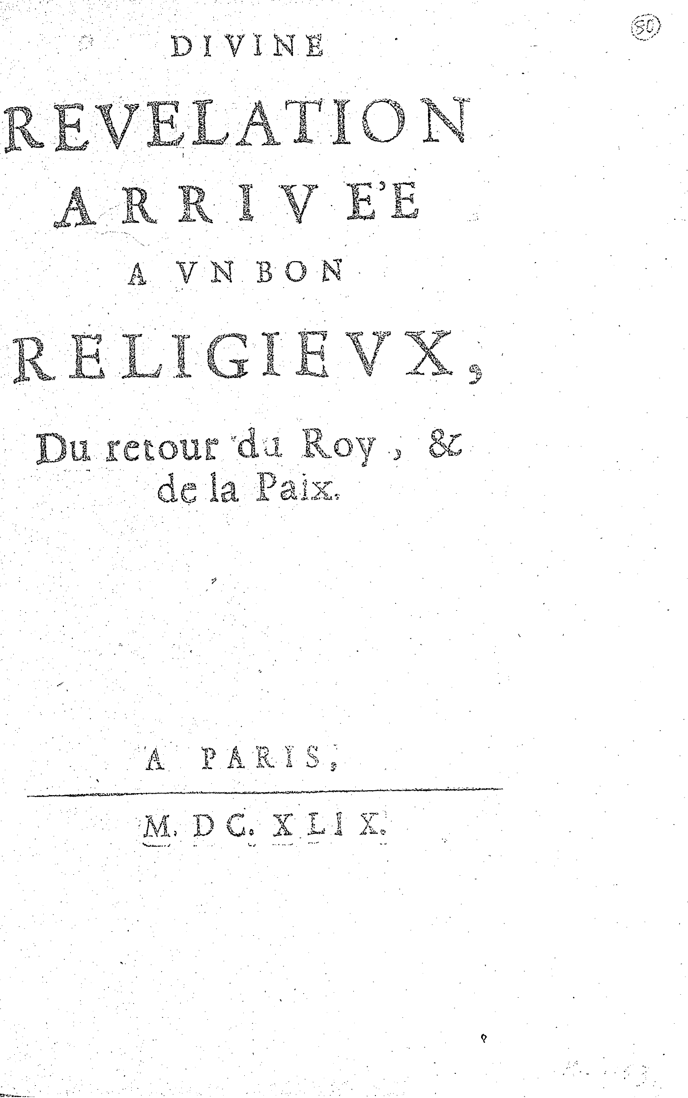 DIVINE REVELATION ARRIVÉE A VN BON RELIGIEVX, Du retour du Roy, & de la Paix.