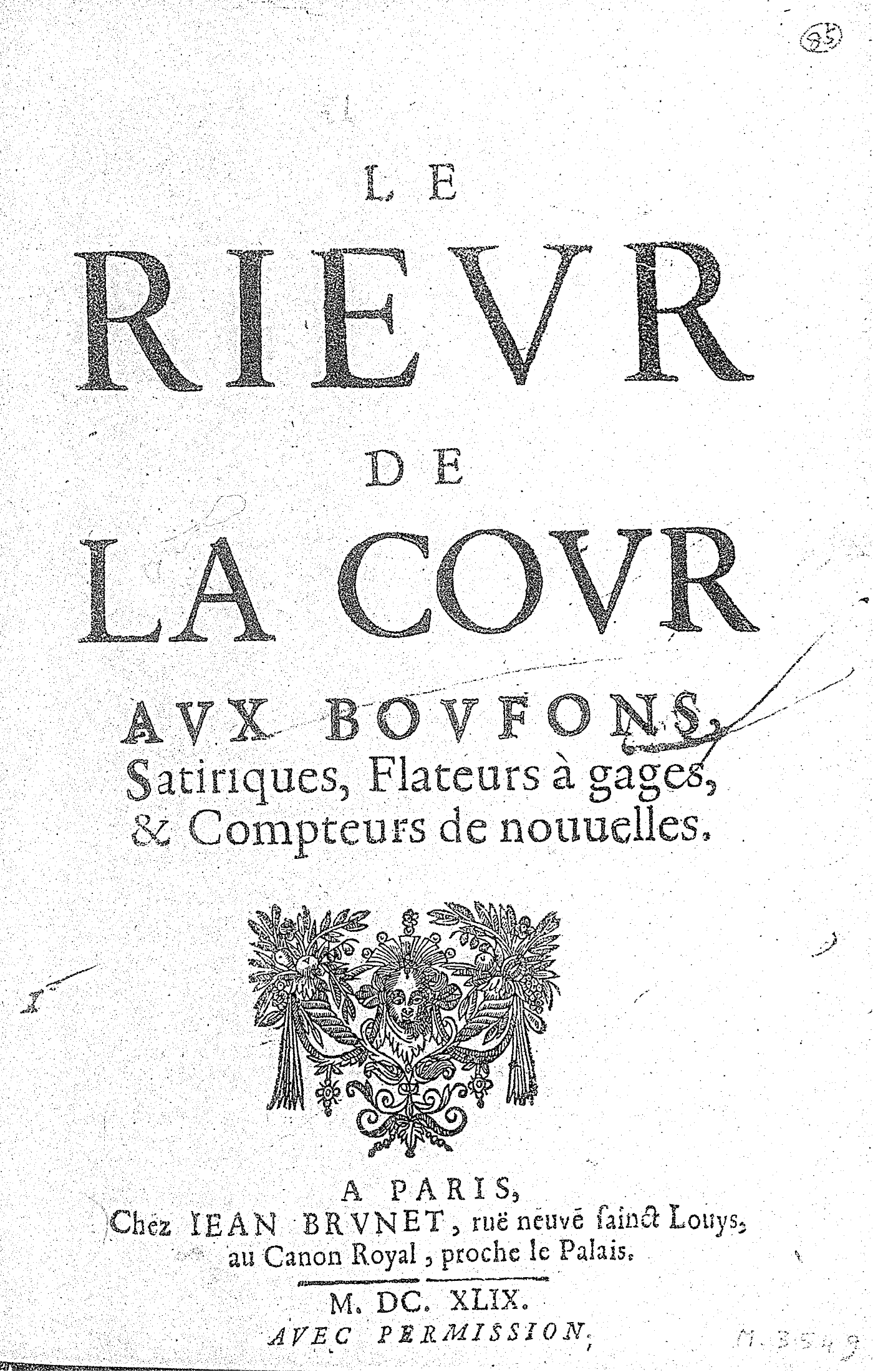 LE RIEVR DE LA COVR AVX BOVFONS, Satiriques, Flateurs à gages, & Compteurs de nouuelles,