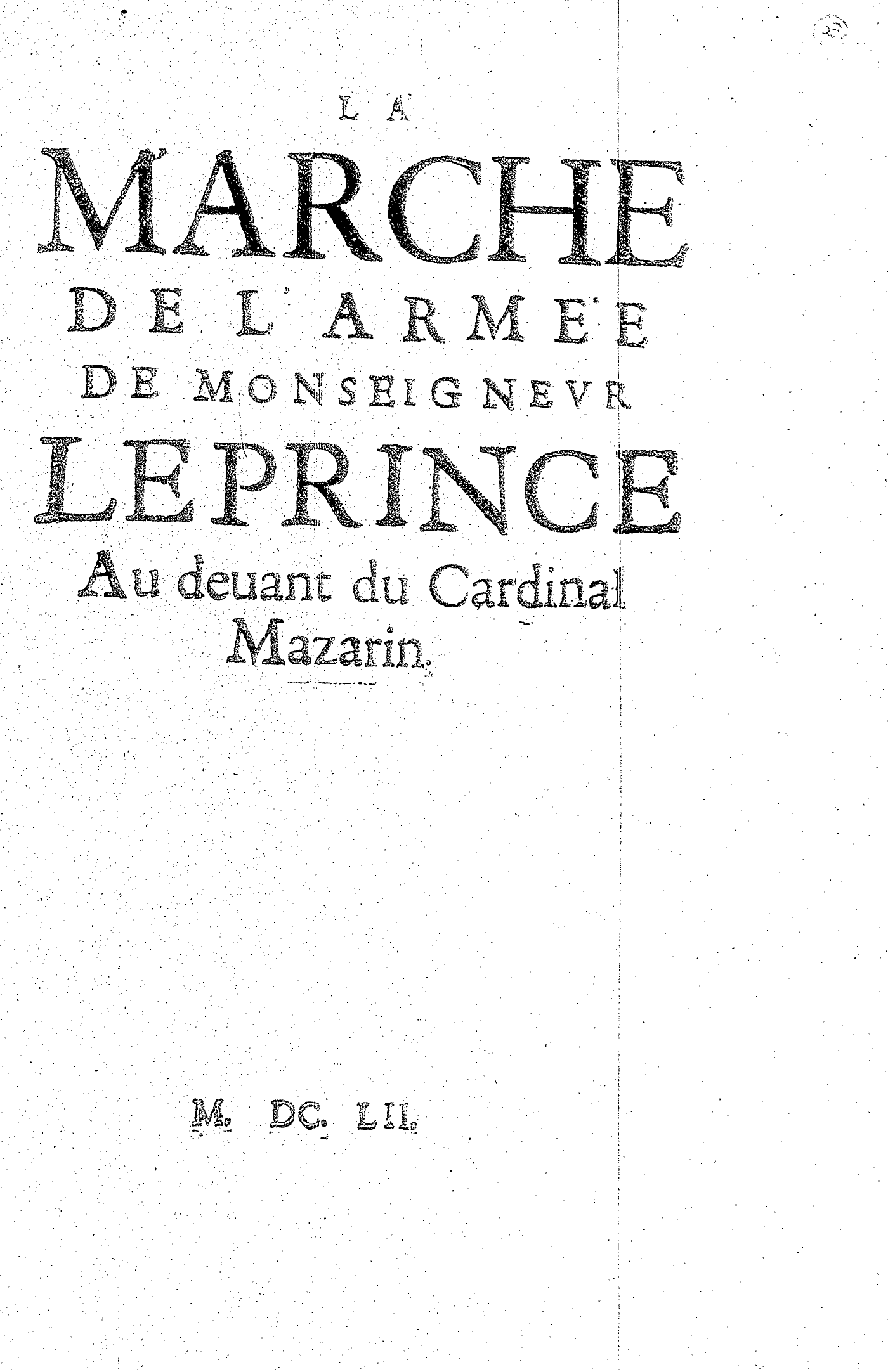 LA MARCHE DE L’ARMÉE DE MONSEIGNEVR LEPRINCE Au deuant du Cardinal Mazarin.