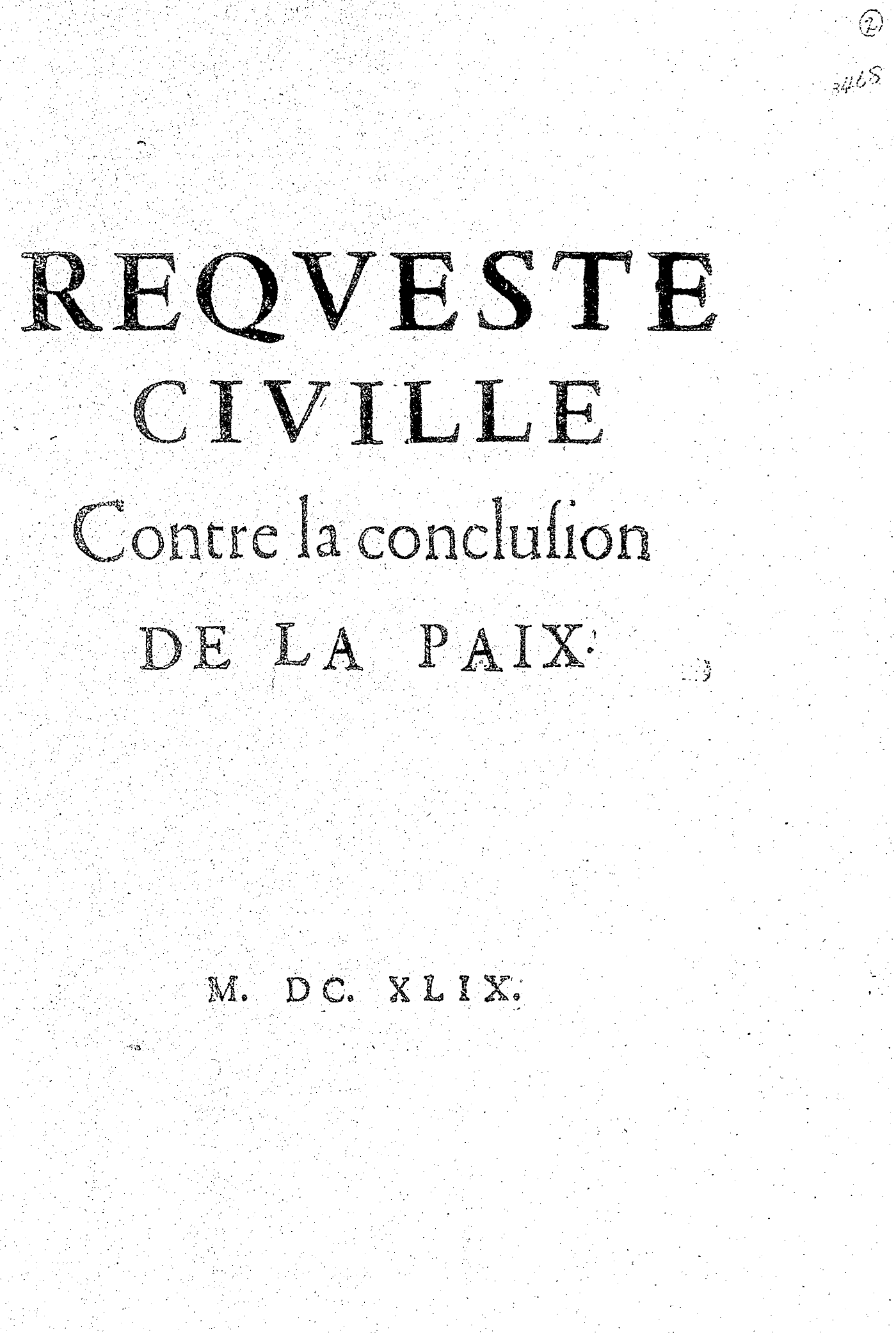 REQVESTE CIVILLE Contre la conclusion DE LA PAIX.