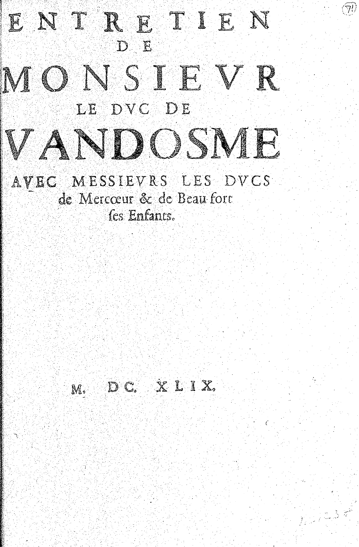 ENTRETIEN DE MONSIEVR LE DVC DE VANDOSME AVEC MESSIEVRS LES DVCS de Mercœur & de Beaufort ses Enfants.