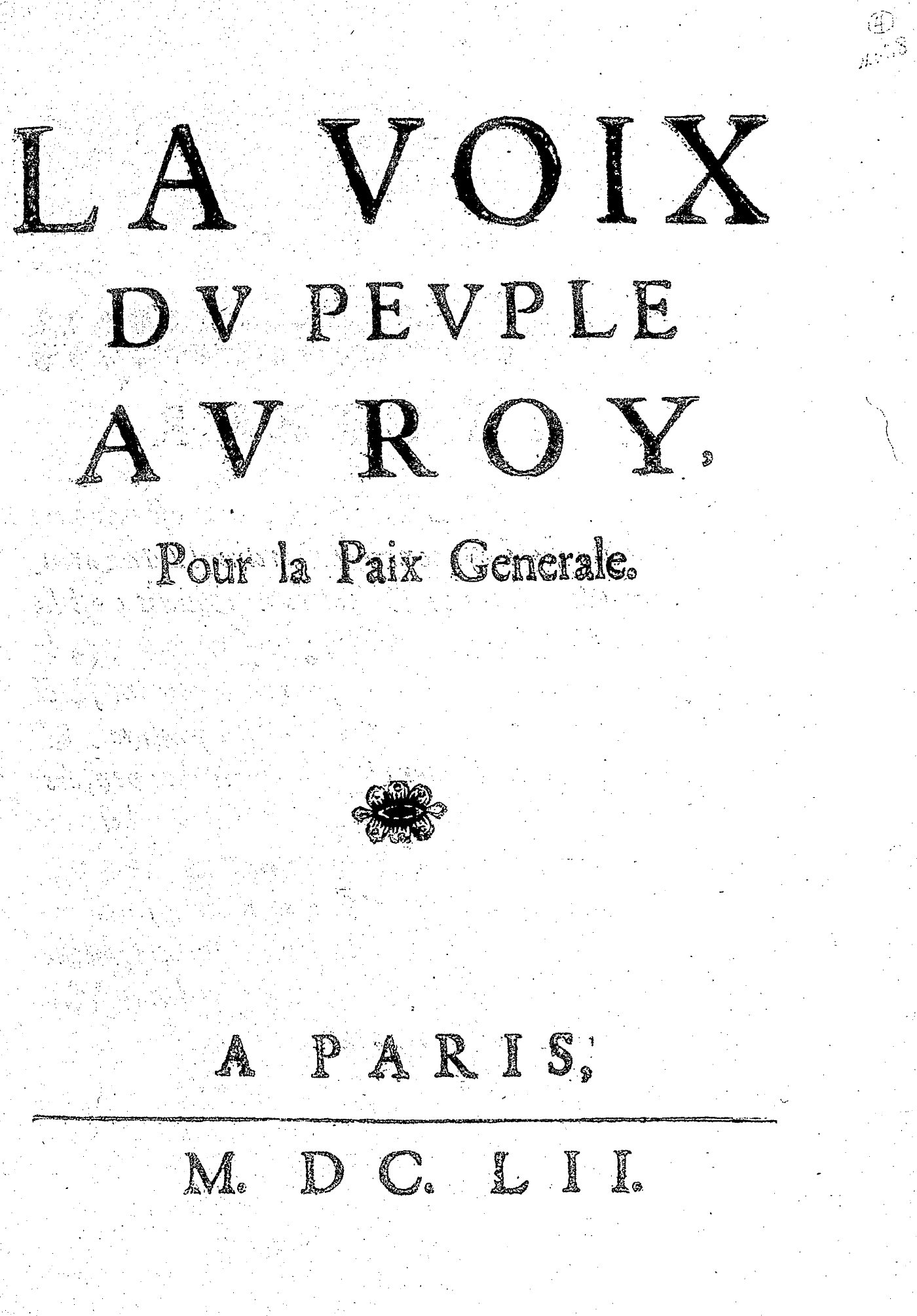 Notice Moreau : Pauvre pamphlet, dont voici pourtant un curieux passage : « Un livre fait par un habitant de Saint-Malo n'a-t-il pas dit hautement, quelque temps devant votre naissance, que la France auroit bientôt un Dauphin et un maître clément et juste ? N'est-il pas vrai ? Un religieux des révérends pères Augustins du faubourg Montmartre, deux ans devant votre naissance, n'a-t-il pas prédit qu'il se lèveroit un soleil, qui dissiperoit toutes les vapeurs dangereuses