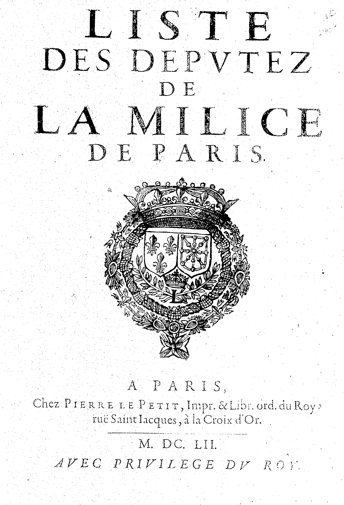 LISTE DES DEPVTEZ DE LA MILICE DE PARIS.