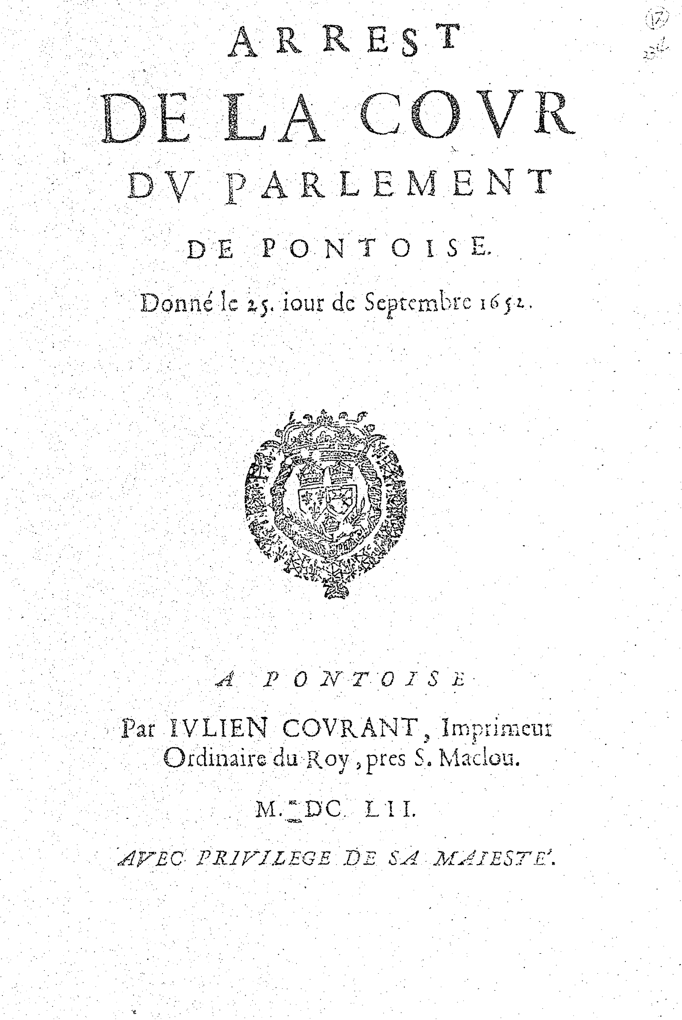 ARREST DE LA COVR DV PARLEMENT DE PONTOISE.