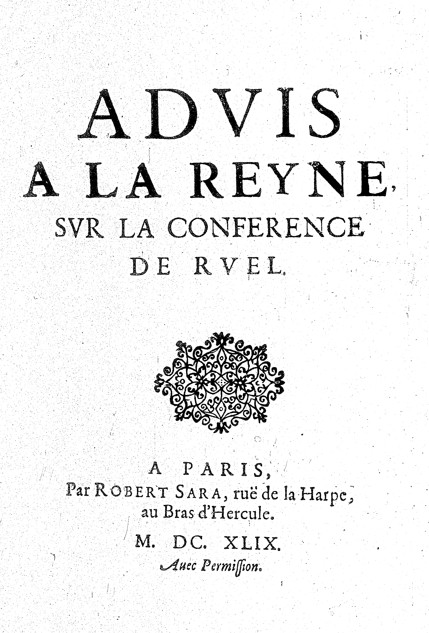 ADVIS A LA REYNE, SVR LA CONFERENCE DE RVEL.