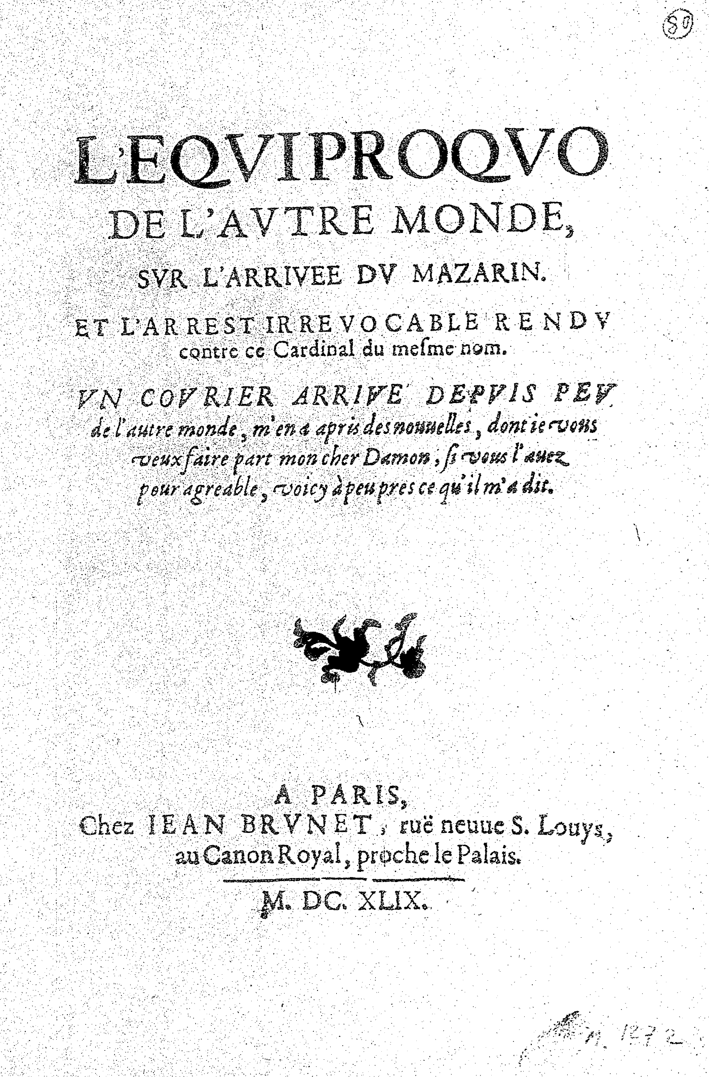 L’EQVIPROQVO DE L’AVTRE MONDE, SVR L’ARRIVEE DV MAZARIN. ET L’ARREST IRREVOCABLE RENDV