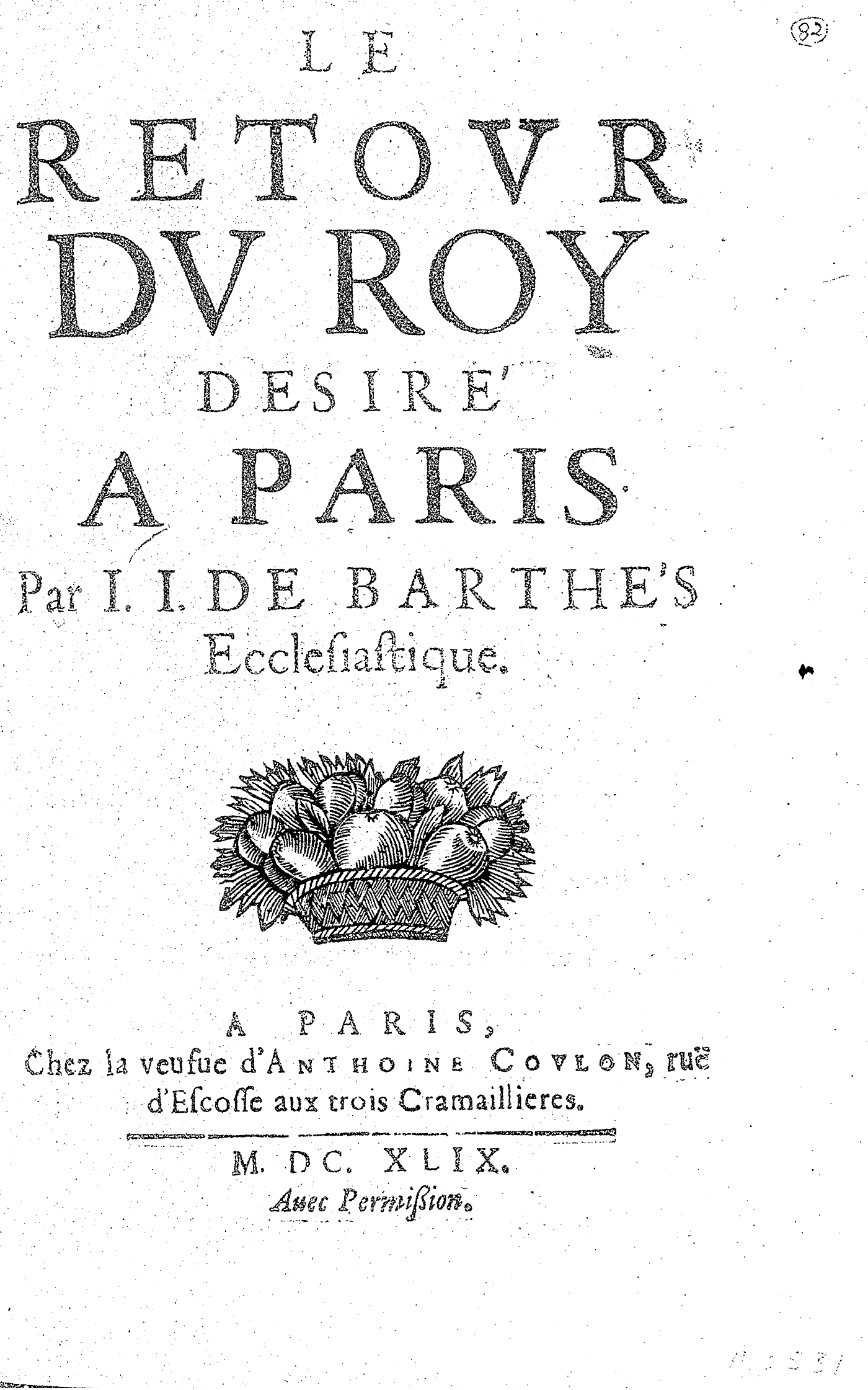 LE RETOVR DV ROY DESIRÉ A PARIS. Par I. I. DE BARTHÉS Ecclesiastique.