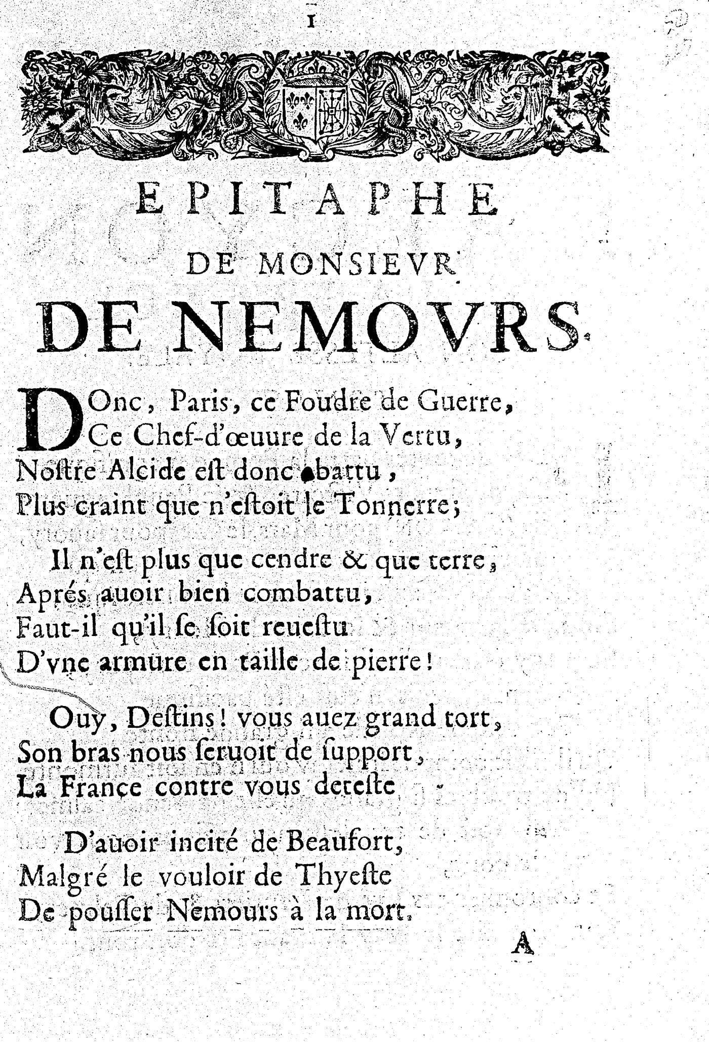 EPITAPHE DE MONSIEVR DE NEMOVRS.