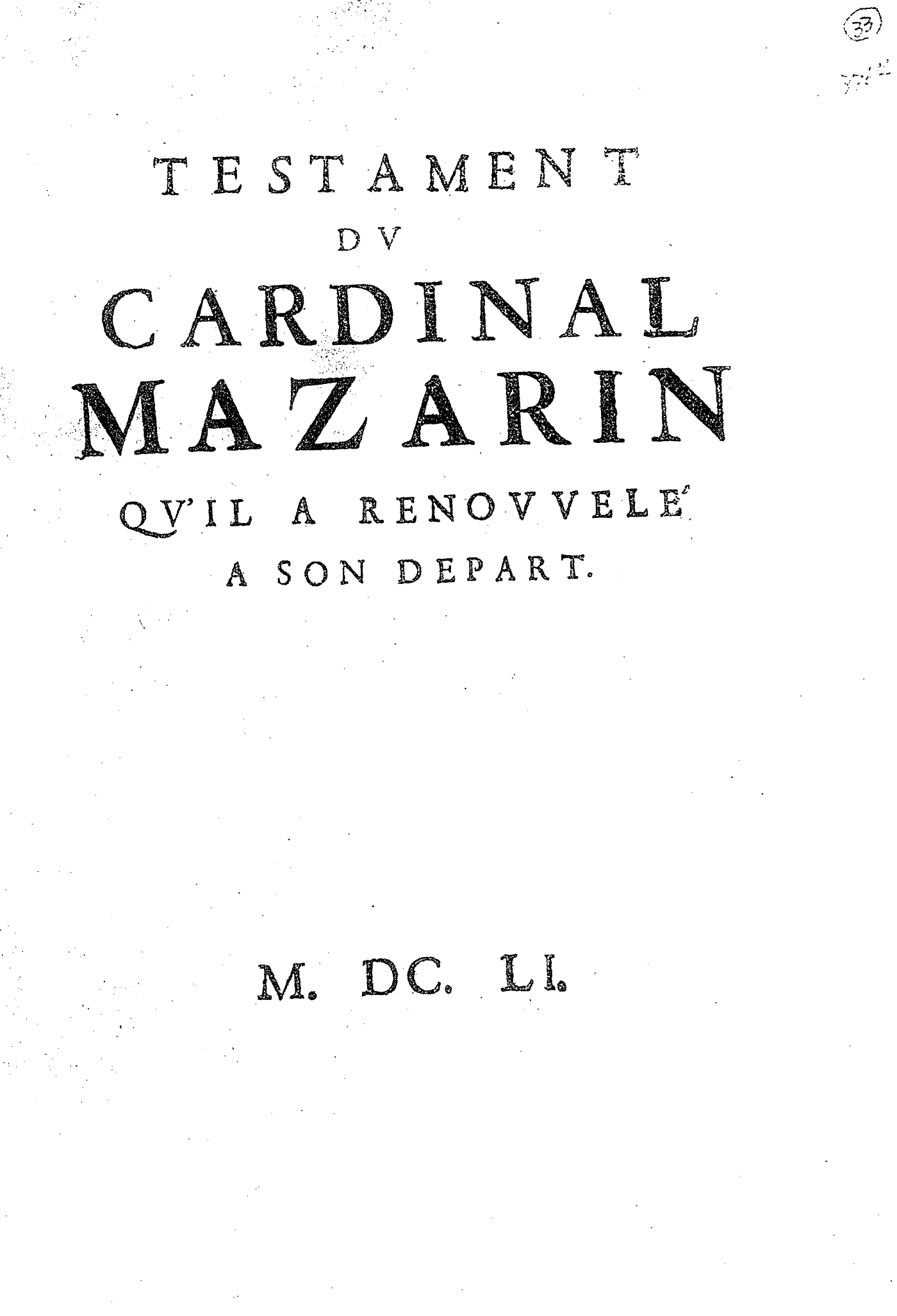 TESTAMENT DV CARDINAL MAZARIN QV’IL A RENOVVELÉ A SON DEPART.