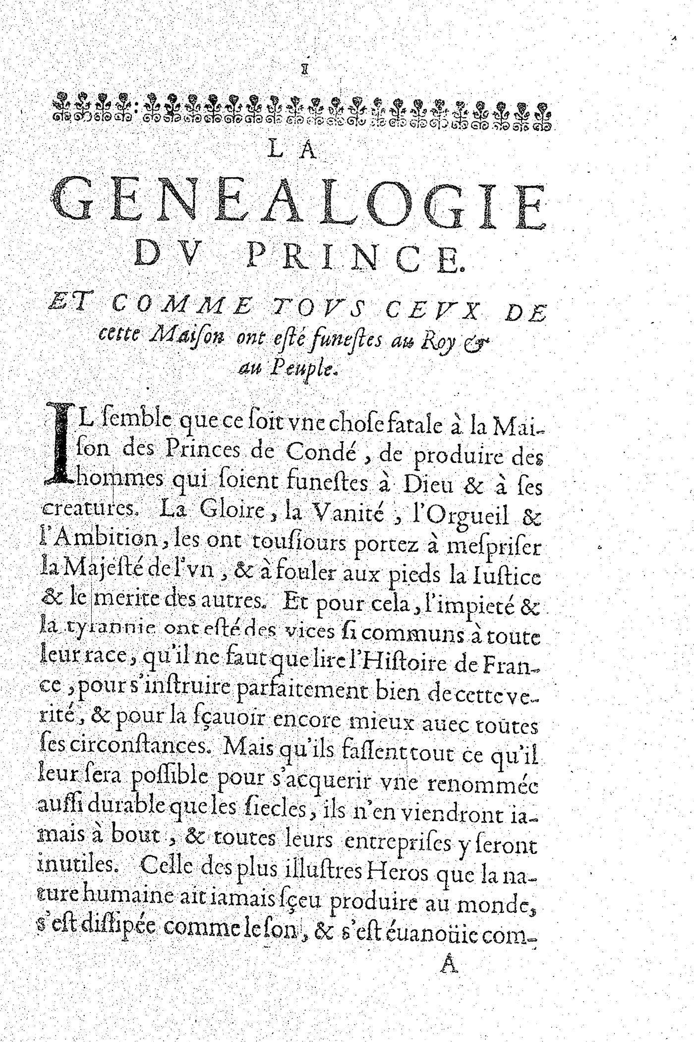 LA GENEALOGIE DV PRINCE. ET COMME TOVS CEVX DE cette Maison ont esté funestes au Roy & au Peuple.
