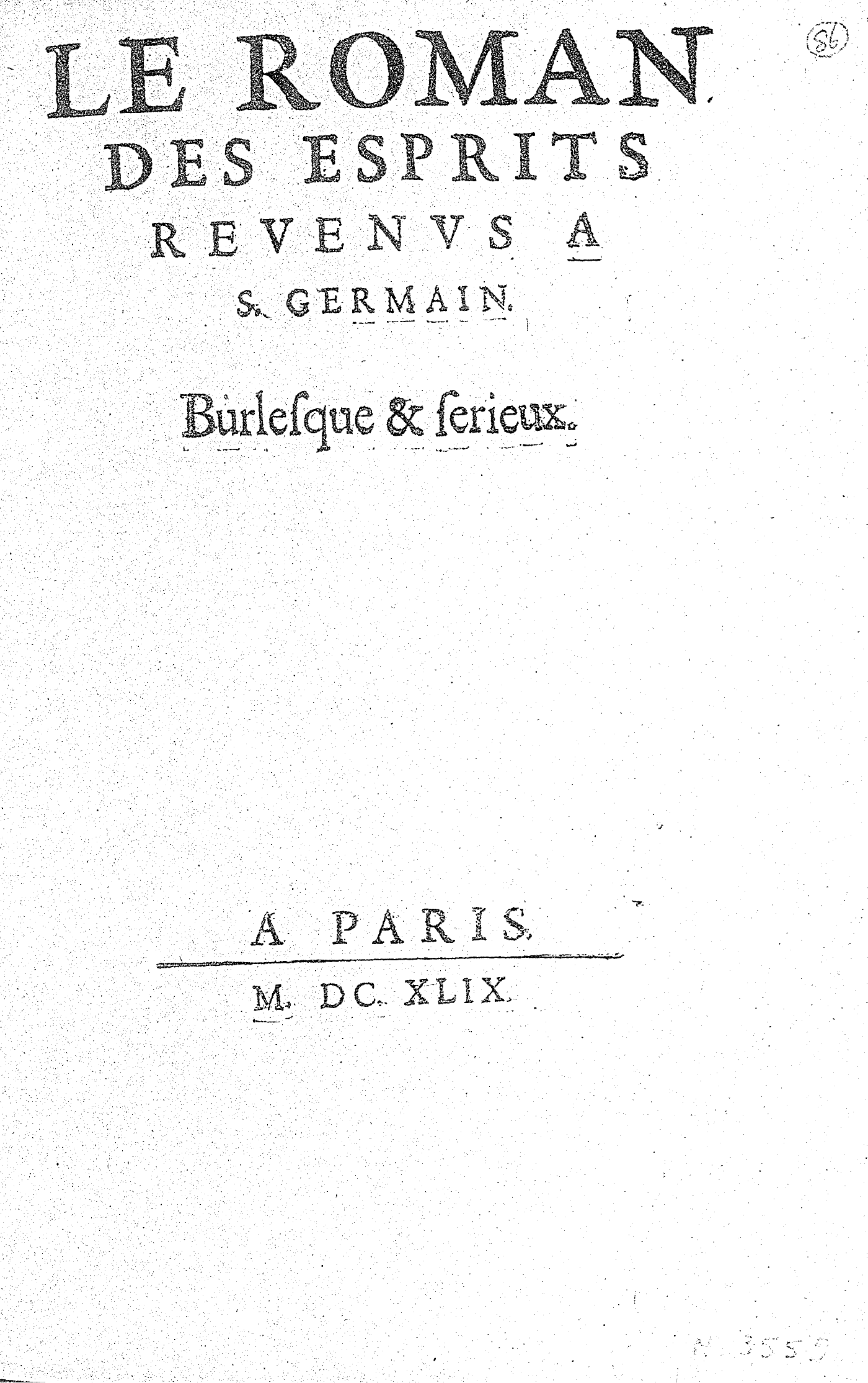 LE ROMAN DES ESPRITS REVENVS A S. GERMAIN.
