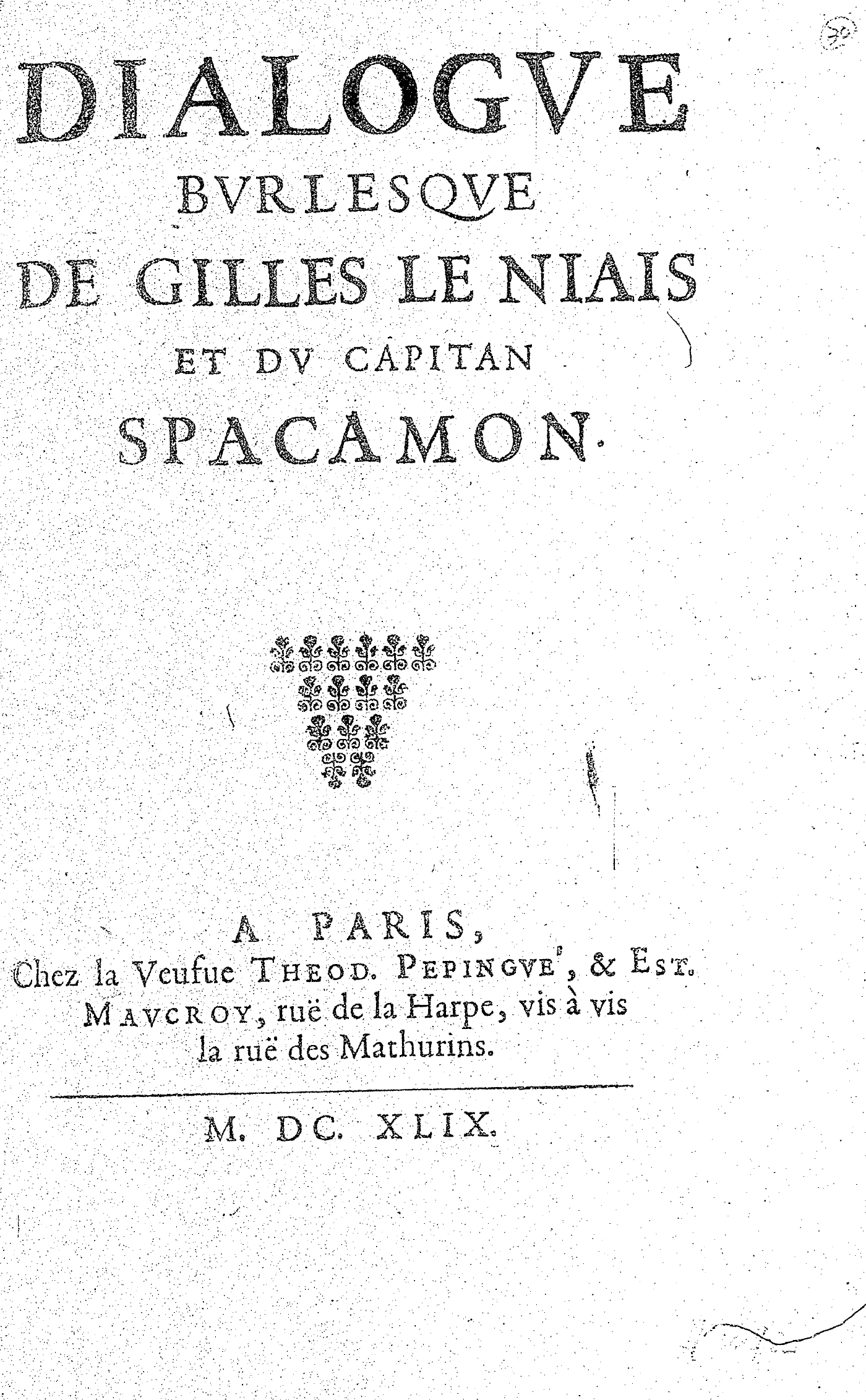 DIALOGVE BVRLESQVE DE GILLES LE NIAIS ET DV CAPITAN SPACAMON.