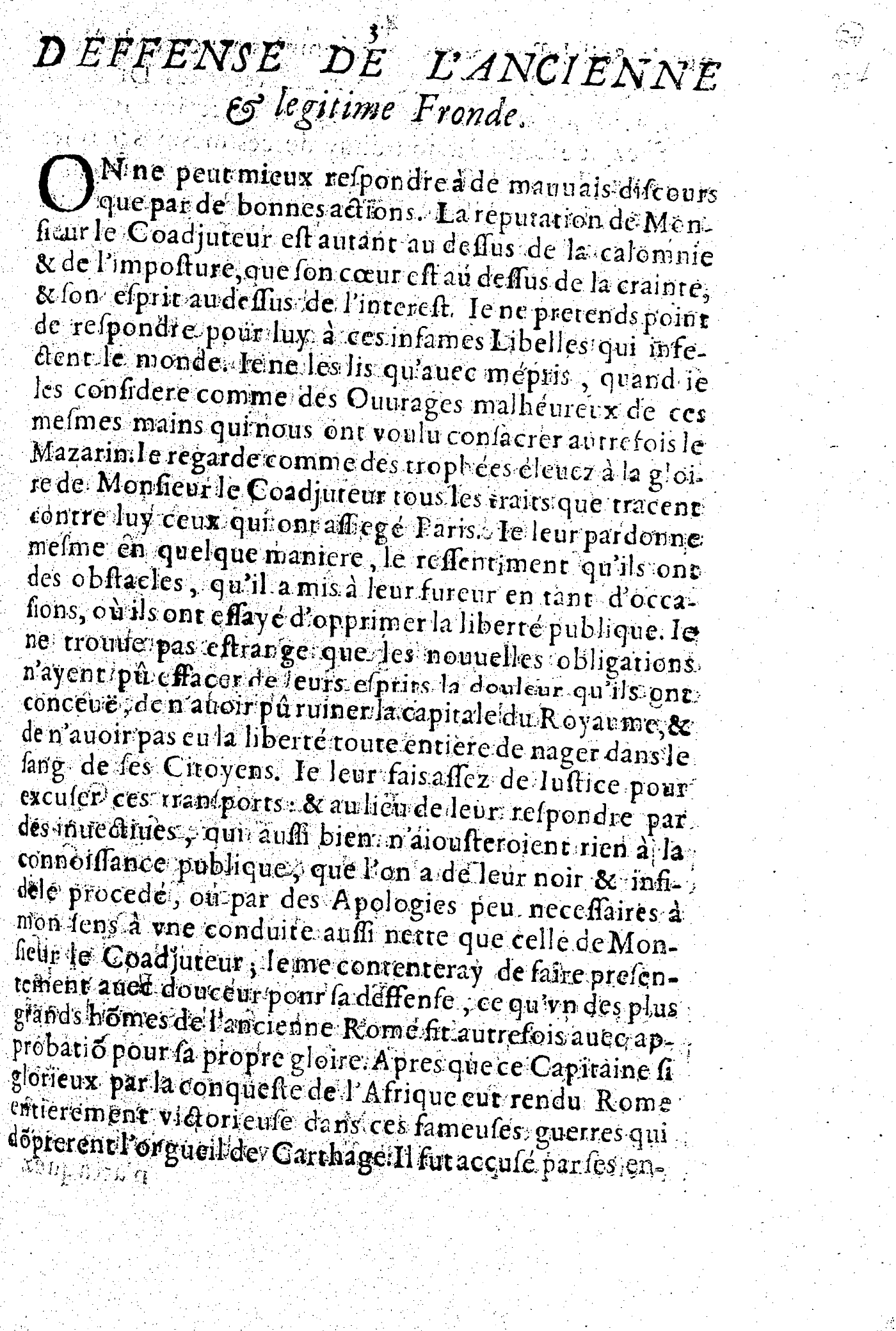 DEFFENSE DE L’ANCIENNE & legitime Fronde.