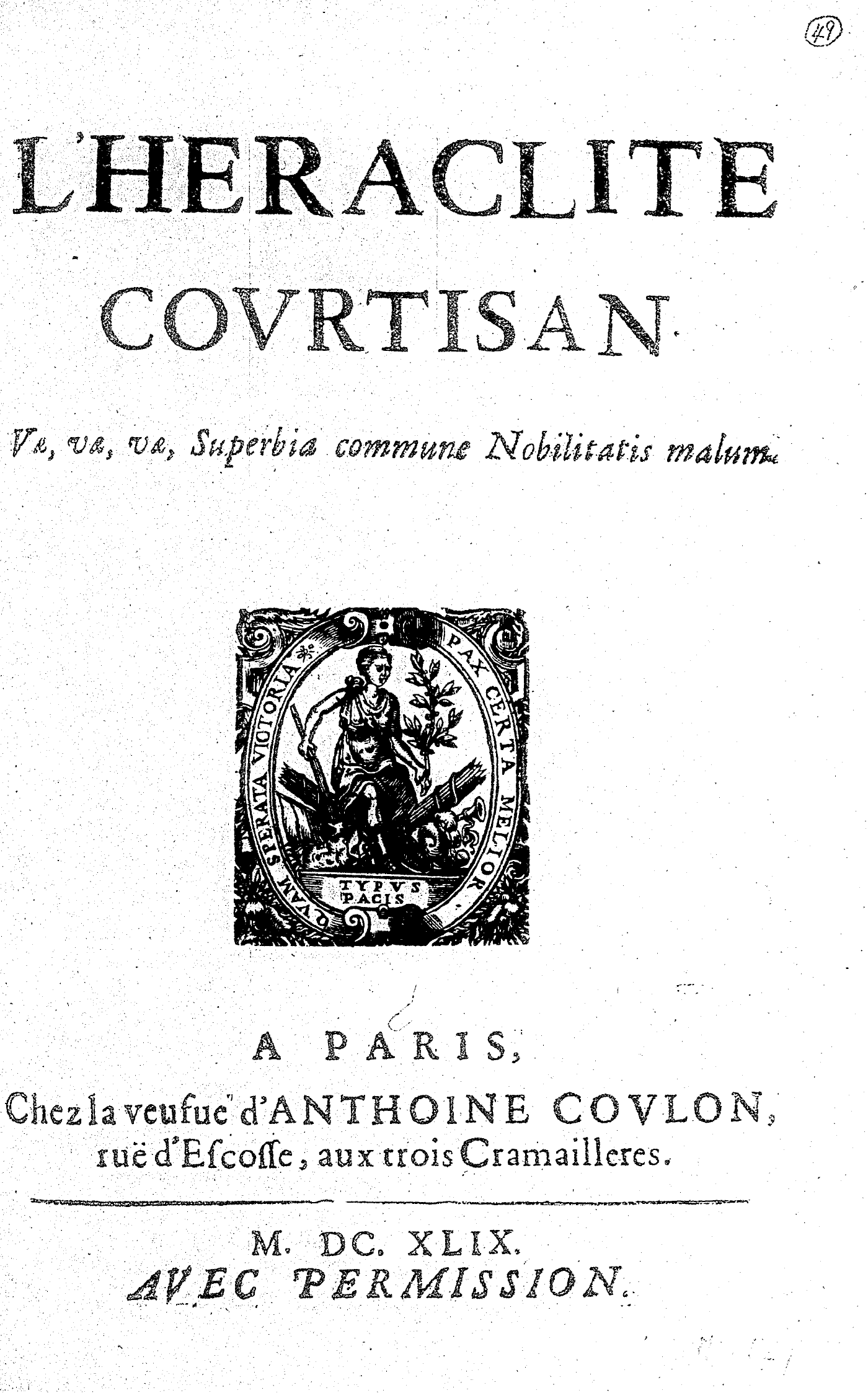 L’HERACLITE COVRTISAN. Væ, væ, væ, Superbia commune Nobilitatis malum.