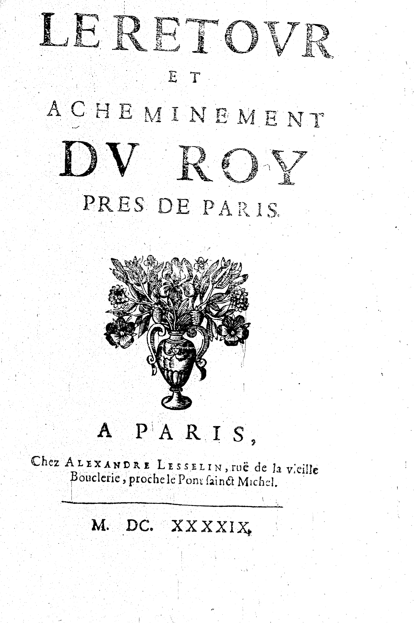 LE RETOVR ET ACHEMINEMENT DV ROY PRES DE PARIS.