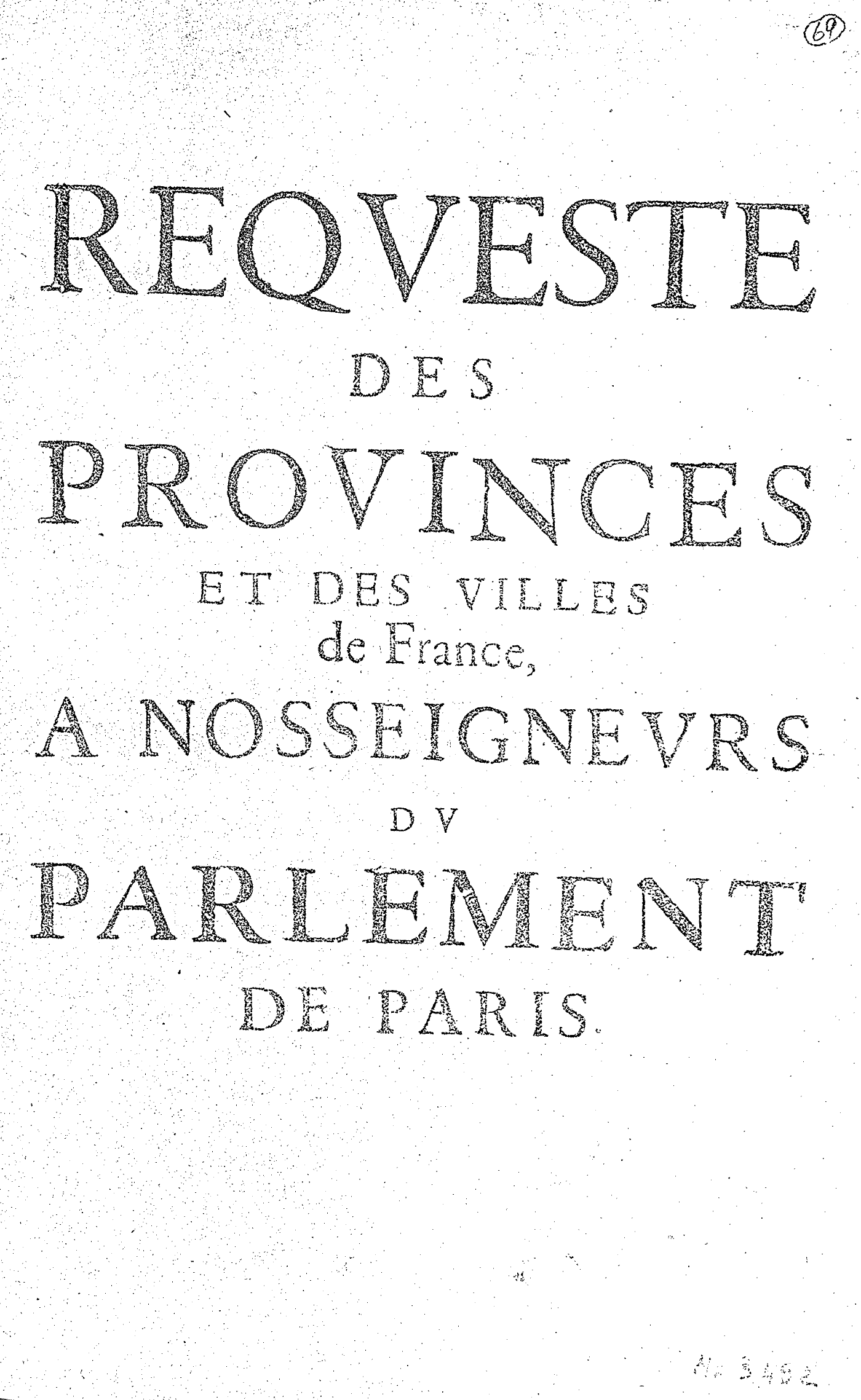 REQVESTE DES PROVINCES ET DES VILLES de France, A NOSSEIGNEVRS DV PARLEMENT DE PARIS.