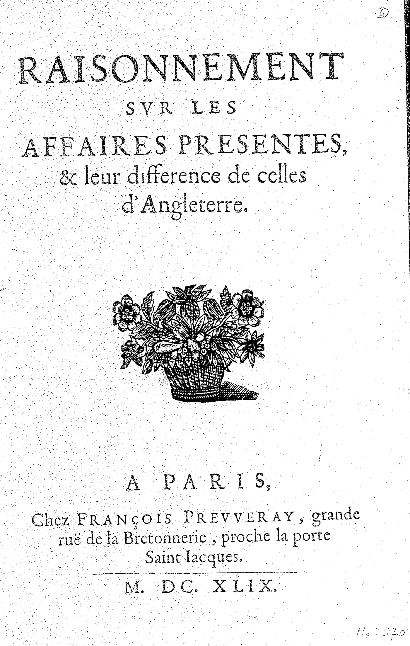 RAISONNEMENT SVR LES AFFAIRES PRESENTES, & leur difference de celles d’Angleterre.